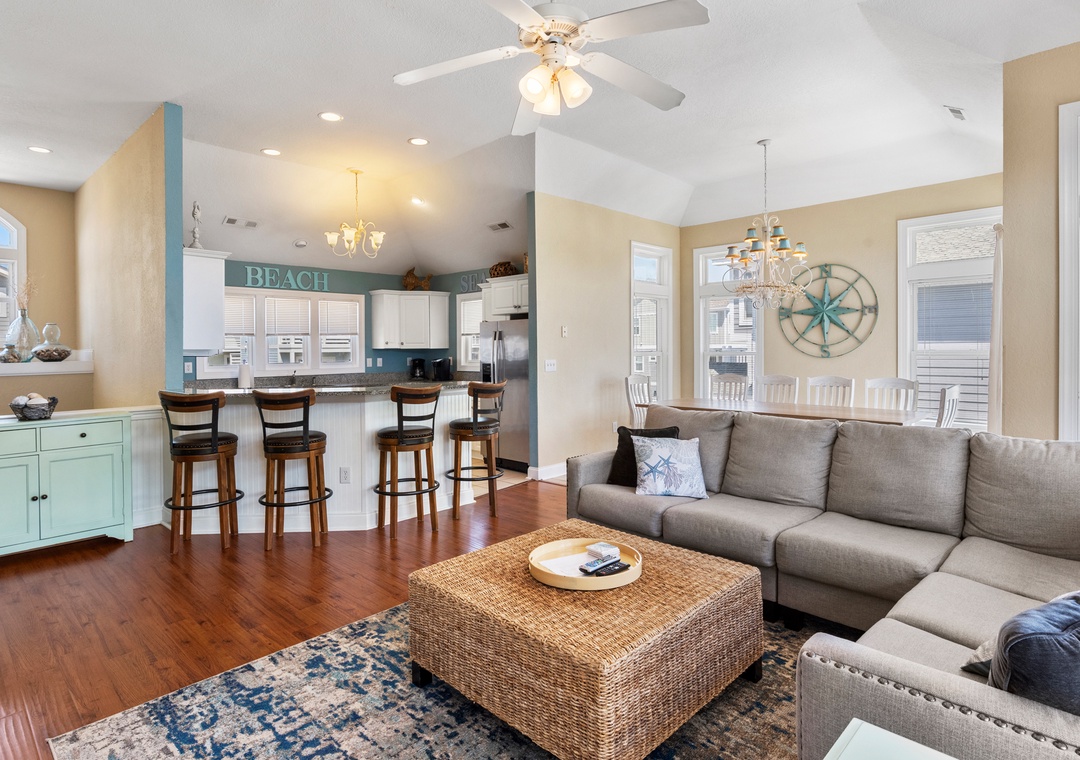 You can have it all at the Craba-Cabana, the hottest spot north of Havana. Walk to the pristine beach in just three minutes, relax by the private pool and poolside hot-tub, walk to restaurants and shops, watch sports on the TV over the custom copper top bar, or chill with a fruity drink and enjoy views from the upper level and deck. If you are feeling energetic, play tennis, shoot some hoops, or take your furry friends down to the lake and lakeside path a few houses away. The kids will love it too - in addition to the surf, sand, and the private pool, they can check out the community pool, feed the turtles in the lake, ride their bikes on the quiet street and cul-de-sac. Just in case you need to stay connected -- not to worry -- there is also wireless internet access.