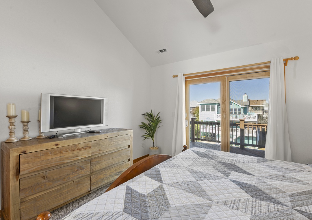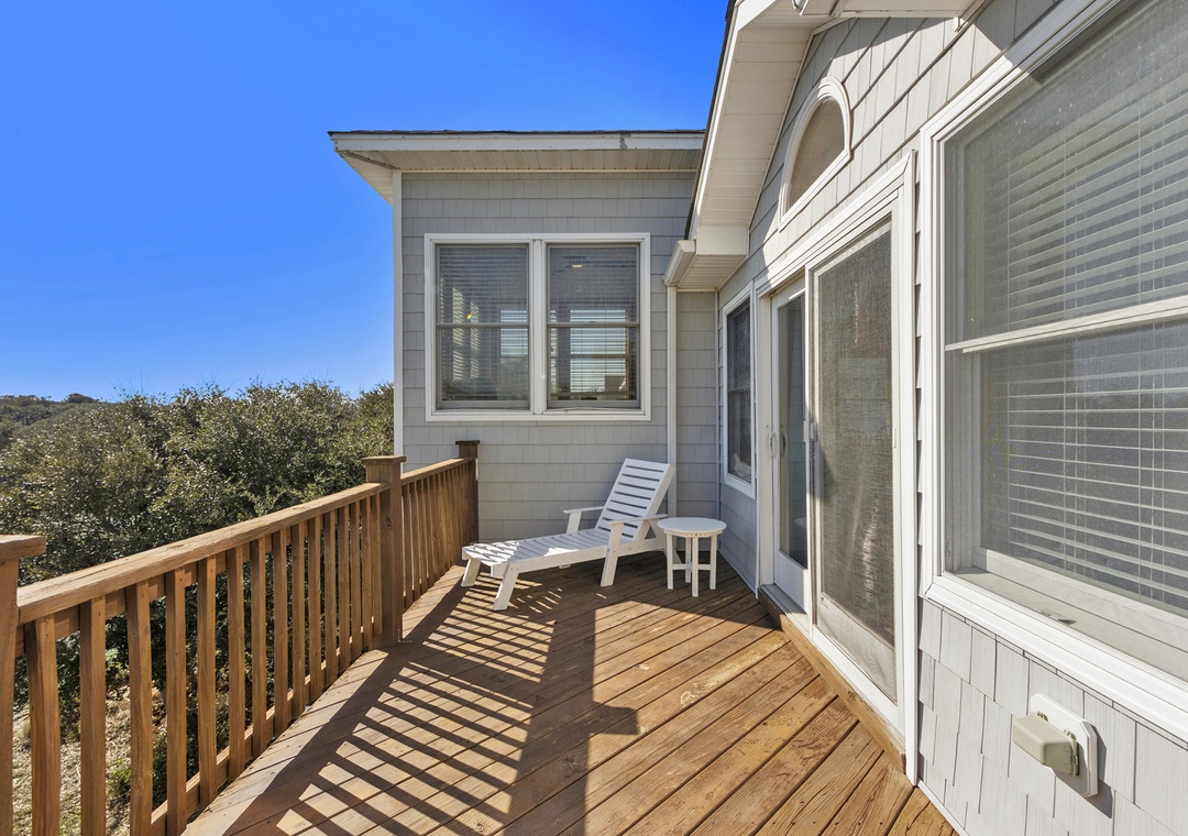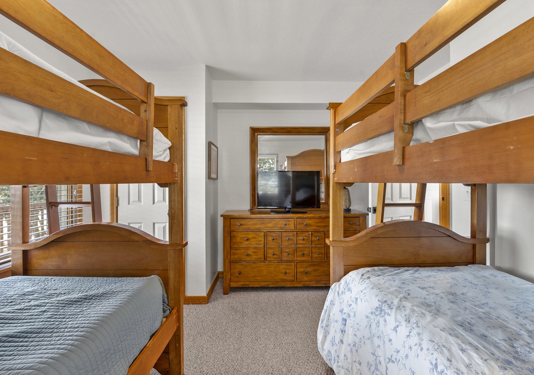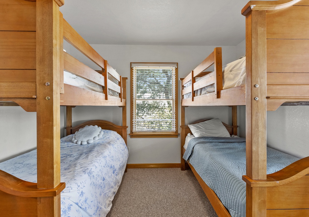 On the middle level, you’ll find two ensuite bedrooms, one king and one queen, along with double bunk room and room with two twin beds that share a bathroom. With access points on this level that lead you out to the hot tub, you will find yourself being close to relaxation and comfort throughout your whole time at Sea of Grace.