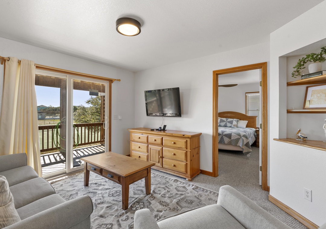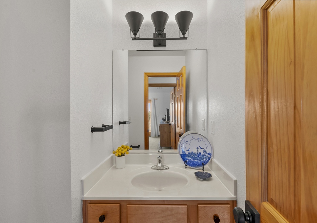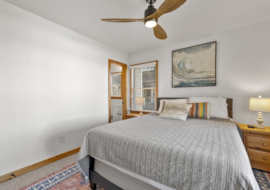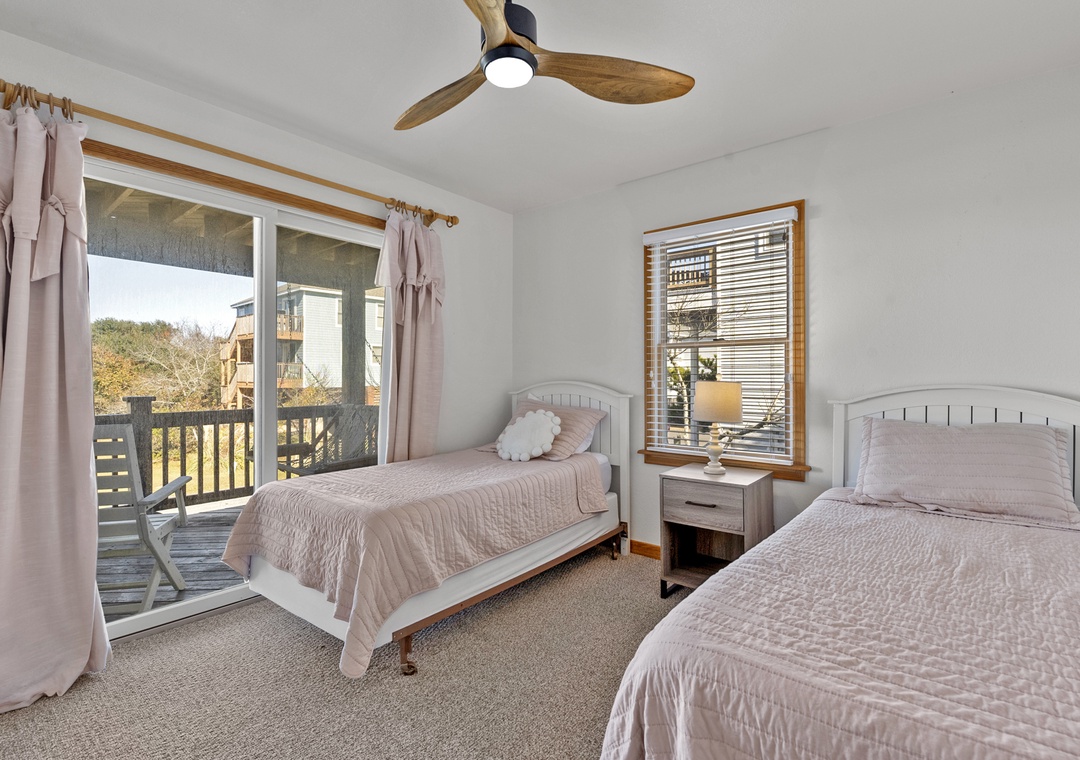 On the middle level, you’ll find two ensuite bedrooms, one king and one queen, along with double bunk room and room with two twin beds that share a bathroom. With access points on this level that lead you out to the hot tub, you will find yourself being close to relaxation and comfort throughout your whole time at Sea of Grace.