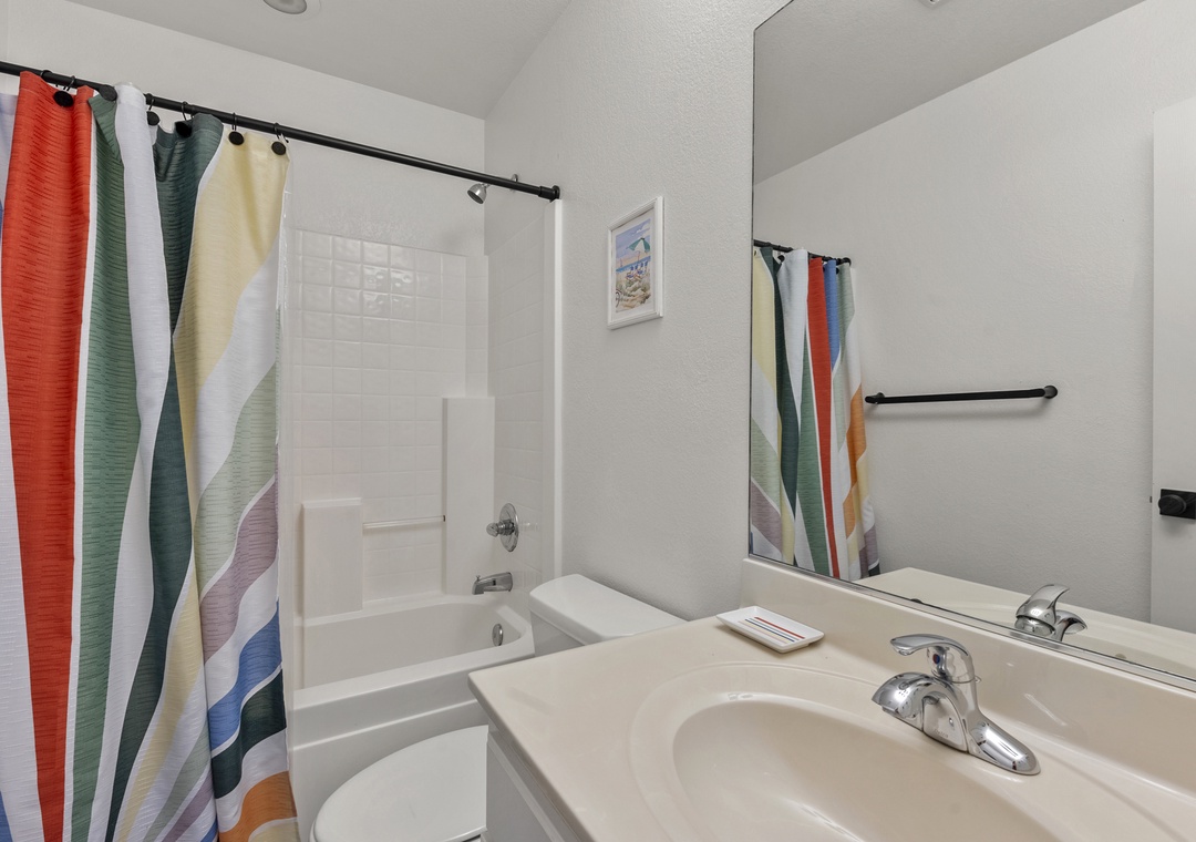 Outside, rinse off in one of the two outdoor showers, use the foot wash station, fire up the gas grill, or shoot hoops at the basketball hoop.