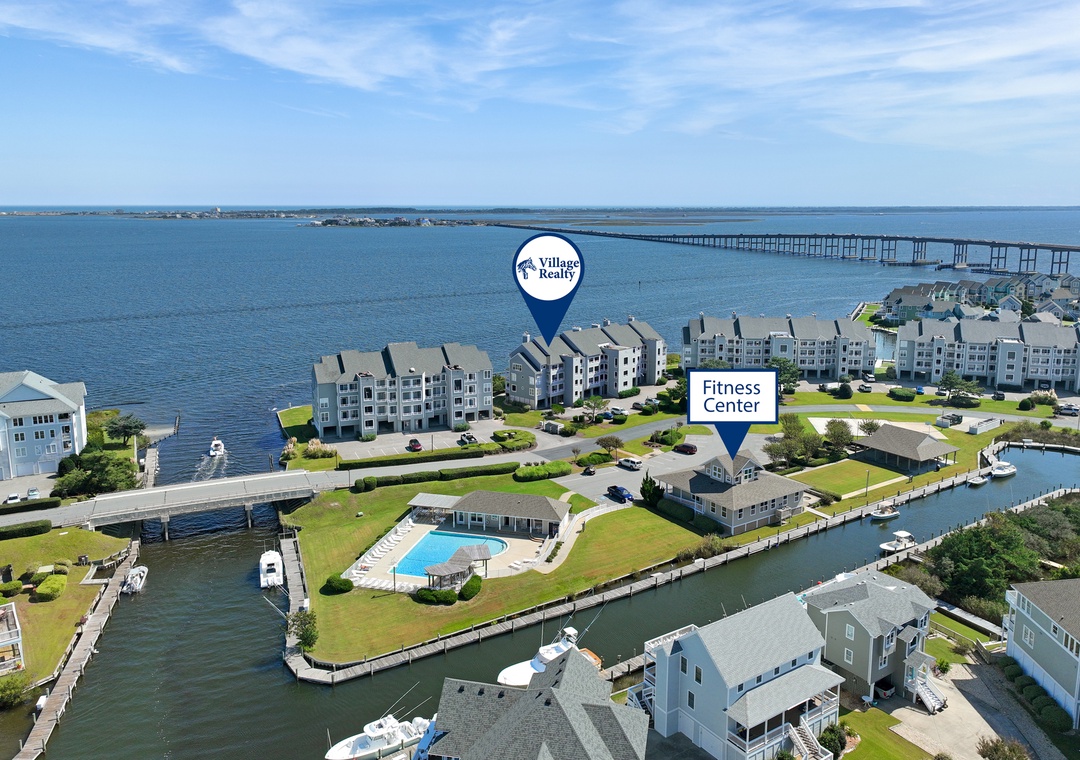 During your stay, you'll have direct access to the boardwalk where you can take evening strolls along the marina and sound. The Pirate's Cove community offers a variety of amenities, including a large outdoor pool, state-of-the-art fitness center, clubhouse, playground and more. The onsite restaurant Blue Water Grill & Raw Bar overlooks the marina and provides lunch, dinner, and a full-service bar with indoor and outdoor seating. Located right across the Washington Baum Bridge, you'll be just a short drive from the public beach accesses in Nags Head.