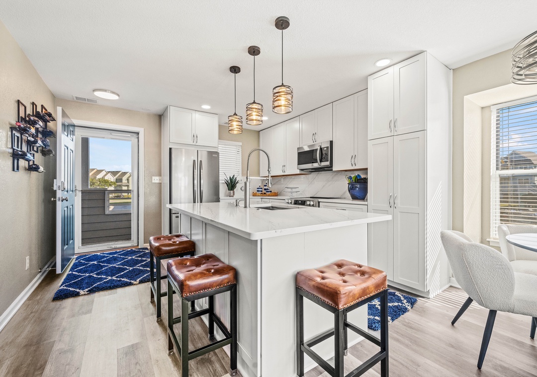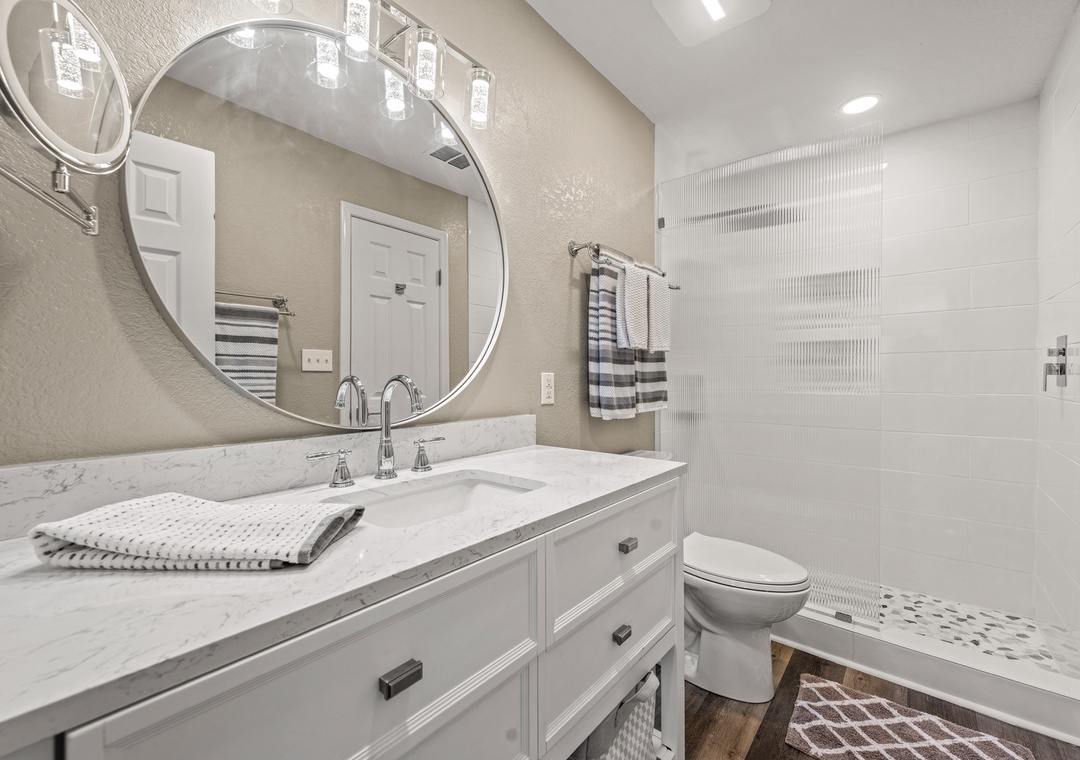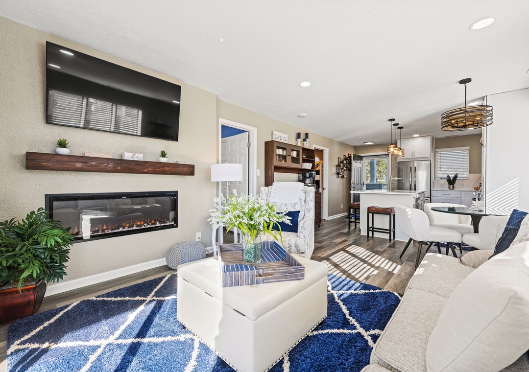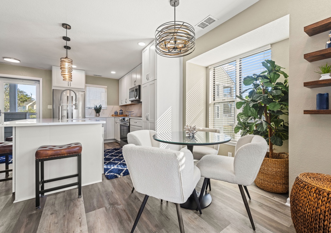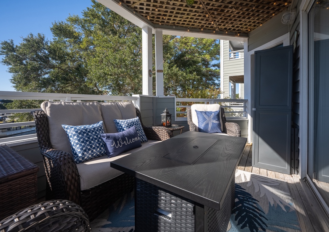 New to the Village Realty program for 2025! Located in the world-class boating community of Pirate's Cove, Seas the Day is a stunning condo that overlooks the canal and provides direct access to the waterfront boardwalk. Bring your boat and dock it at the condo's nearby private slip. The interior has been recently remodeled from top to bottom, with new flooring, fixtures and furniture throughout. After a day at the beach or enjoying the resort amenities, come home and relax in the elegantly decorated, open-concept living area with cozy electric fireplace. Sliding doors open up to the comfortably furnished covered deck where you can admire the canal views and evening sunsets. Back inside, embrace your inner chef in the remodeled kitchen with stainless steel appliances and island with bar seating. Start each day making your favorite morning brew using the fabulous built-in coffee bar. The primary suite includes a king bed along with convenient access to the deck, and a bonus room is furnished with a bunkbed for additional sleeping arrangements. Both rooms share access to a beautifully remodeled bathroom complete with luxurious rainfall showerhead for a spa-like experience.