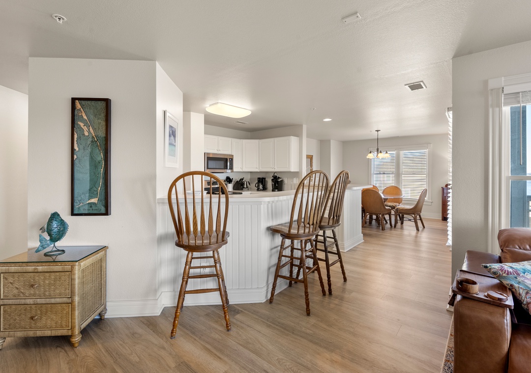 What a wonderful stay! The condo was absolutely beautiful with a great corner porch to enjoy early morning coffee and evening chats! The view was perfect. Loved watching the boats come and go. Spacious and well equipped with lots of windows. We love the closeness to Manteo and some local favorite restaurants on the bridge. Will definitely stay again!!- Reviewed On: 4/23/2023