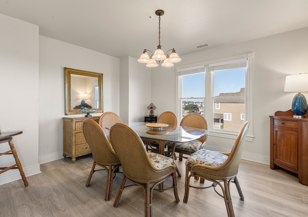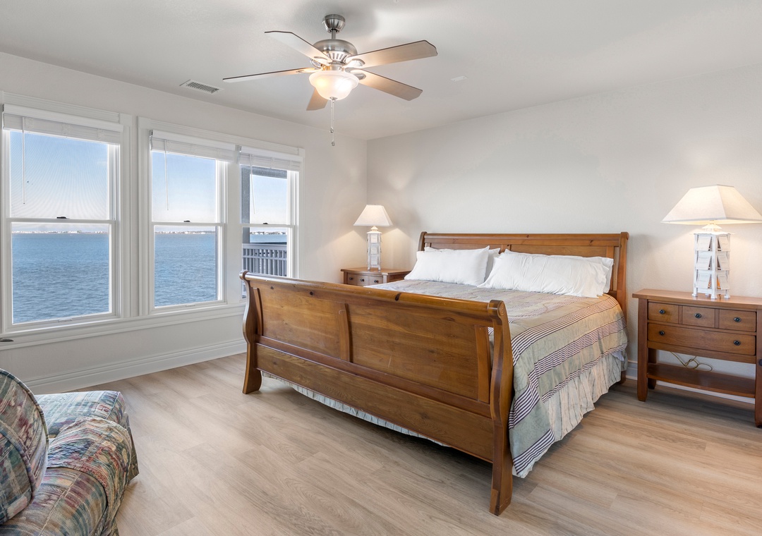 Beautiful sunrise view over the channel with the wrap around deck. The space was quiet and peaceful which was perfect for our toddler nephew who needed daily naps and an early bedtime. There was plenty of space for the adults to hang out and have conversations in the indoor/outdoor living area while the little one was asleep. The keyless entrance made this unit ideal for the 6 adults coming in and out at different times. The location was great; it is close to the bridge to Nags Head for a quick drive to the beach, but on Manteo which was a quick drive to the aquarium, shops and things to do there (especially on rainy days). The space and location was perfect for us.- Reviewed On: 5/2/2023