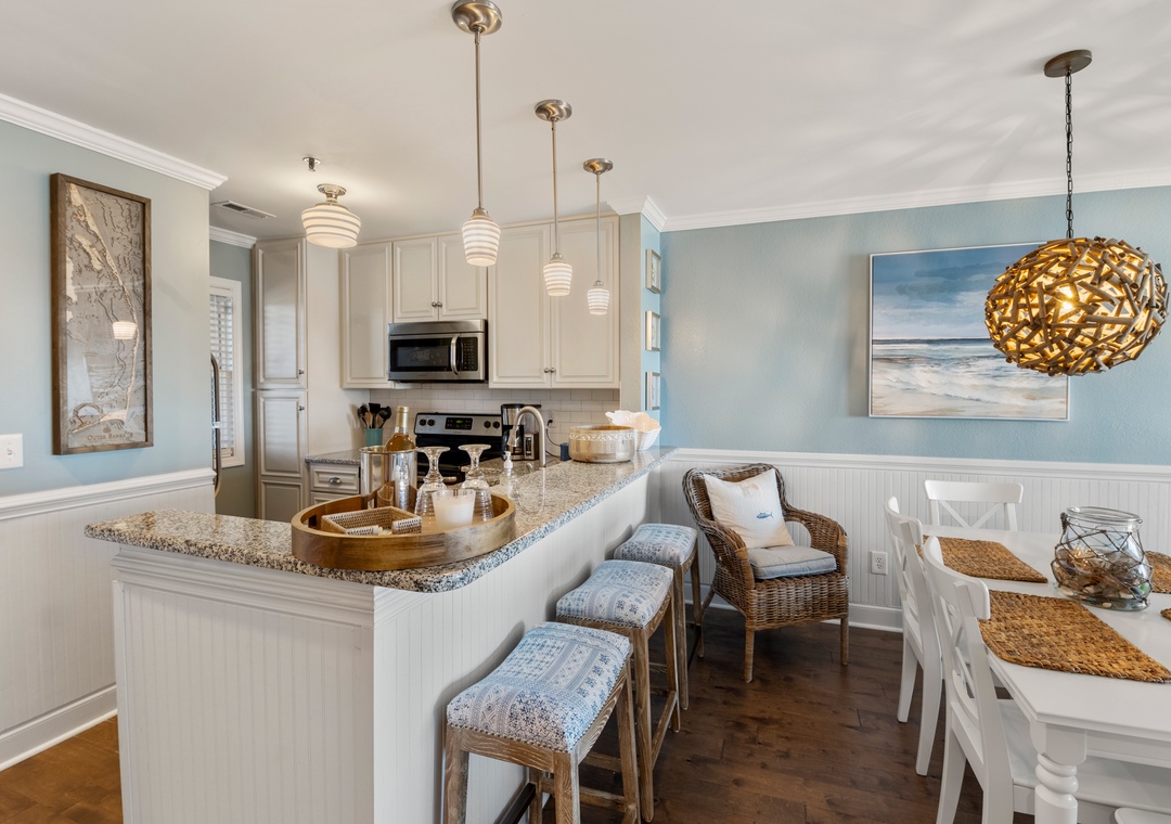 The Captain’s Quarters condo is beautifully decorated. The views of the sunrise on the sound, boats in and out of the marina, and the bridge were very enjoyable. While the entire condo is impeccably decorated, our family favorite spot was at the table on the deck overlooking the sound. The condo was clean, the kitchen well-appointed, the beds comfortable, and the access easy. We will definitely stay again!- Reviewed On: 6/1/2023