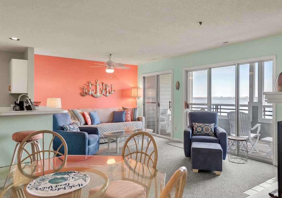 Enjoy your vacation in this private little island paradise at Sea la Vie where you can awake to an amazing sunrise and end the day with a stunning sunset. This comfortable three-bedroom condo is a great escape where you can relax and unwind. Located in the beautiful Pirates Cove resort where you will find all the amenities you want and more, this waterfront resort includes on-site amenities that include swimming pools, clubhouse, fitness center, tennis courts, playground, a commons area, and 4 miles of perimeter docking perfect for walking or fishing, a world-class marina, and the Blue Water Grill & Raw Bar restaurant. There is room for everyone to gather after a busy day to dine and watch movies and plan your next day's adventures. This condo is dog friendly so make sure you don't leave them behind. Take advantage of the elevator in the building to bring in your luggage and groceries.