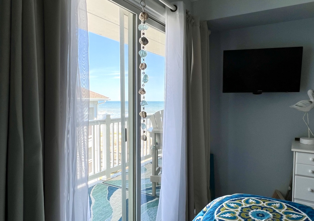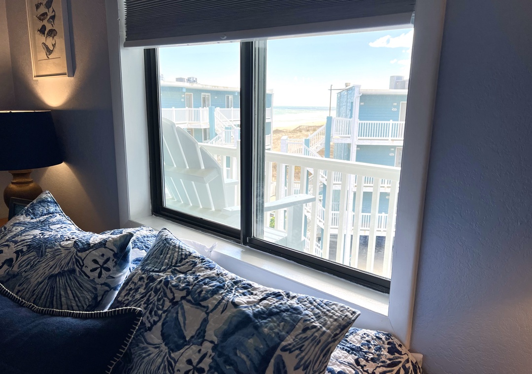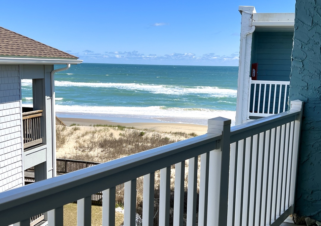 Just load your luggage and groceries onto the convenient cargo lift on the side of the building, which stops right outside your front door, and your vacation has begun! Stunning ocean views await you from every room door and window. (Yes, you can see the waves from each bed even before your feet even hit the floor!) Enjoy your morning coffee in the sunshine right outside the front door. Have dinner and drinks on the spacious, private back balcony, which spans both the living room and primary bedroom, as you watch the waves and marvel in the beautiful afterglow of the sunset.