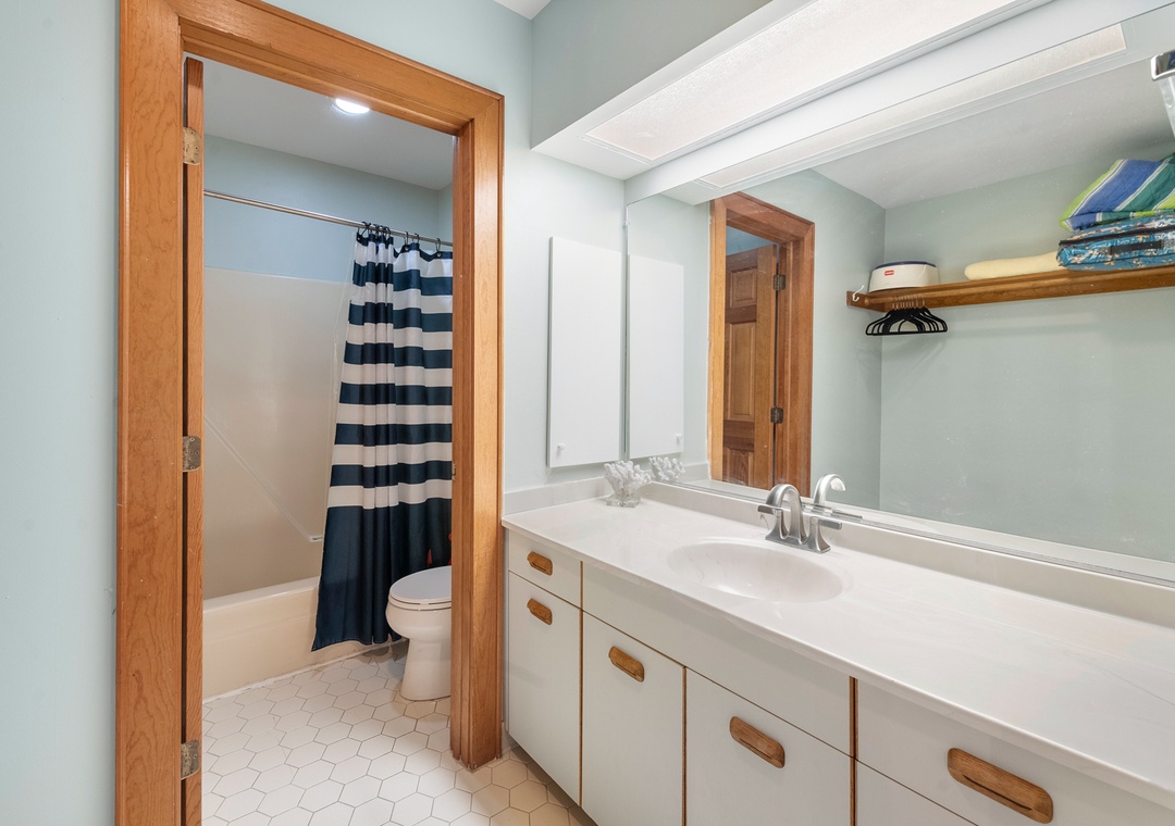 This three-bedroom, three-bath vacation home has three full baths...one with a whirlpool tub. Smart TVs in the living area and all three bedrooms with cable and free Netflix, and a DVD player with a large collection of DVDs. For the little ones, there is a pack-n-play .