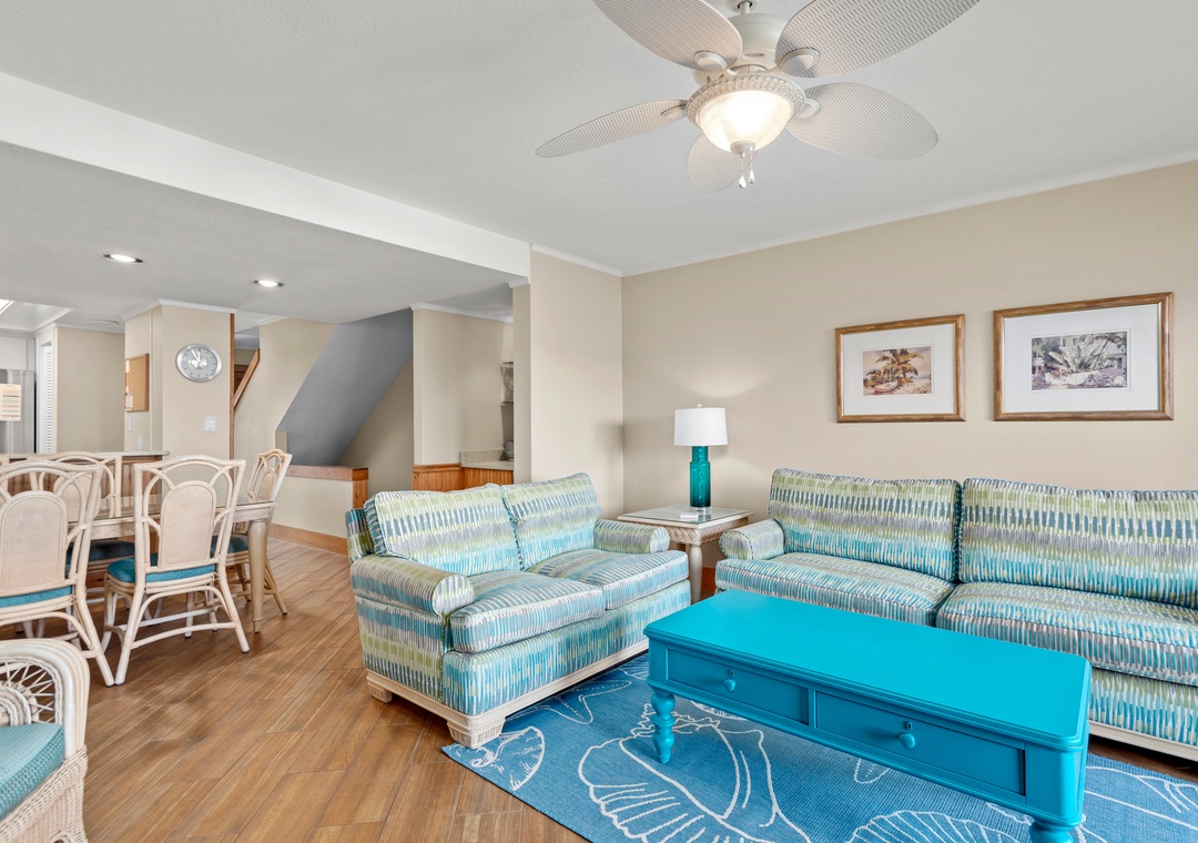 Trip's OBX is located on the oceanfront near Milepost 14.5 in Nags Head and features a community pool and tennis courts. This convenient location means you are close to some of our wonderful Outer Banks restaurants, attractions and unique shopping experiences. There are TVs and a DVD player and a wet bar.