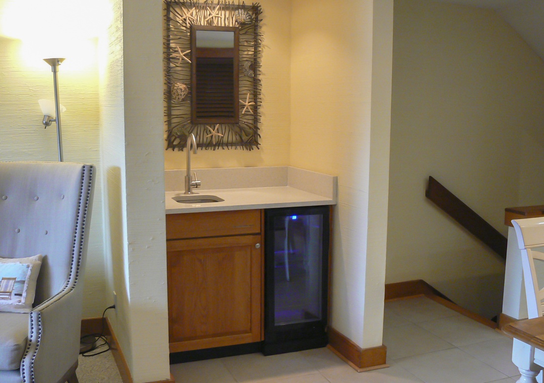 With indoor seating for nine, friends and family can gather for some delicious meals. Enjoy a cold beverage from the wet bar mini-fridge while gathering for a movie in the great room.
