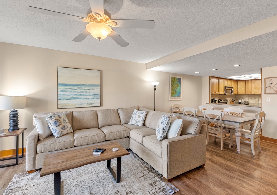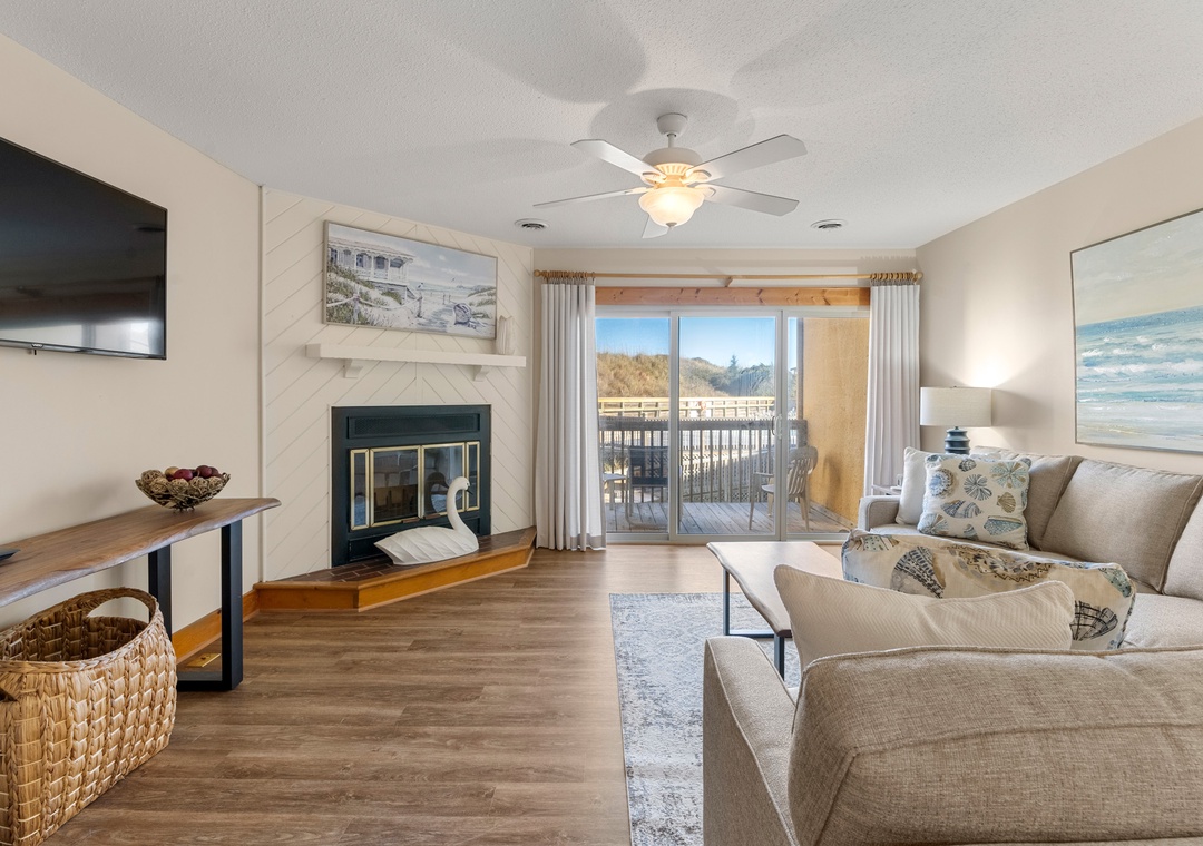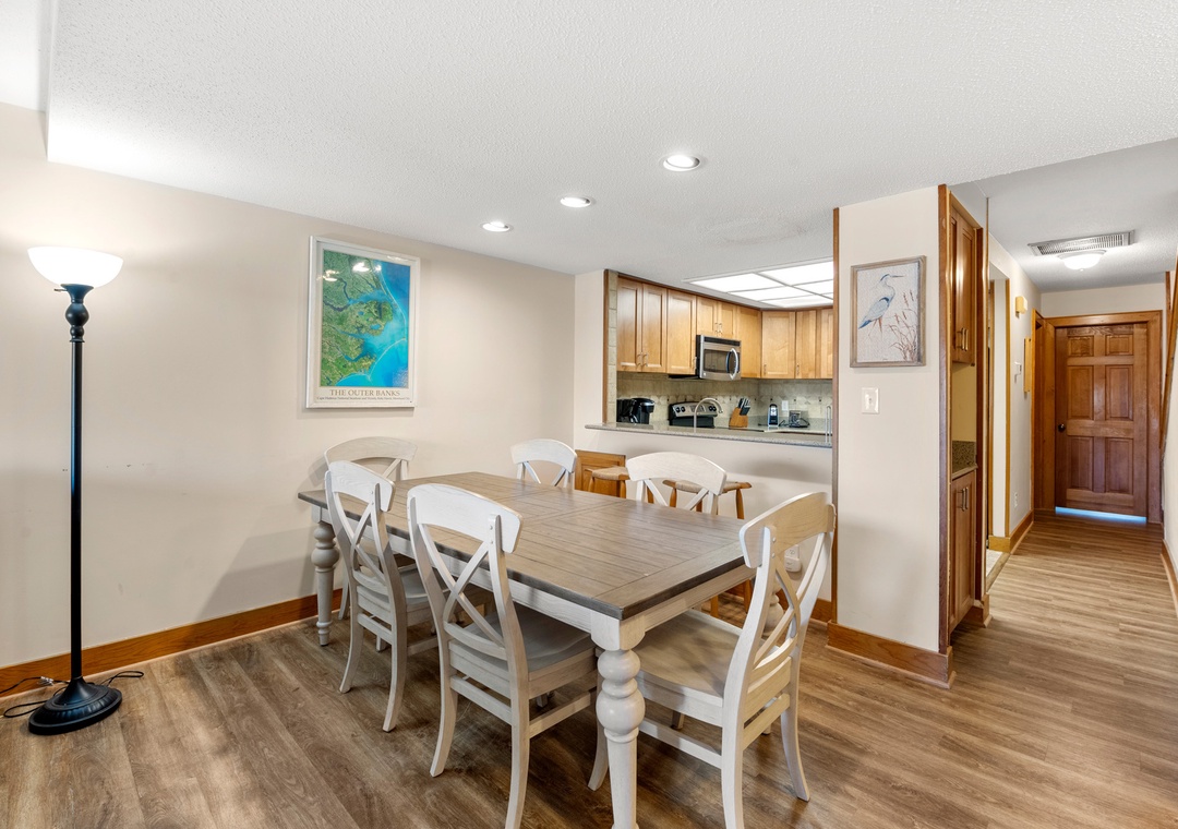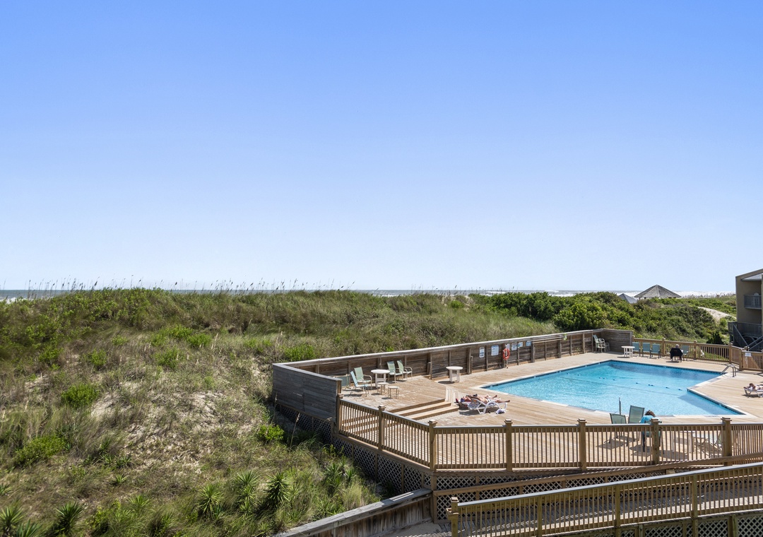 Step outside to enjoy the refreshing ocean breezes from the spacious deck off the living room, where you can also catch a glimpse of the community pool. With the beach just steps away, you’ll have ample opportunity to unwind on the sand, collect unique shells, or search for glimmering seaglass along the shore.