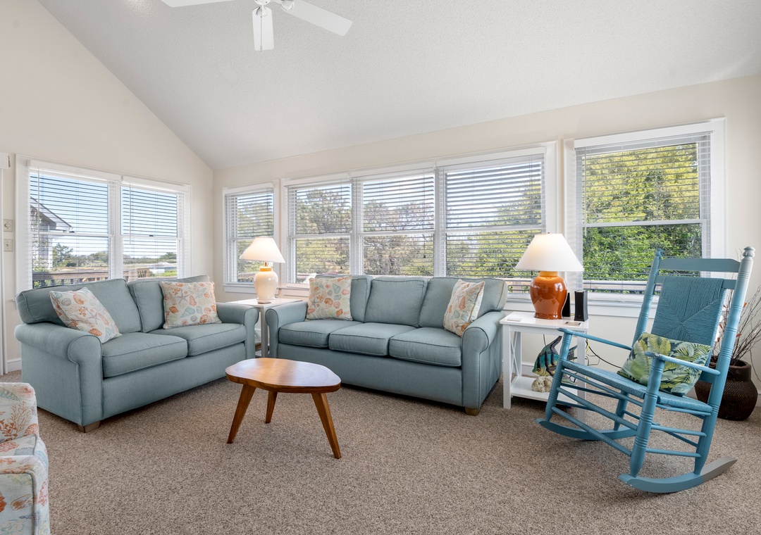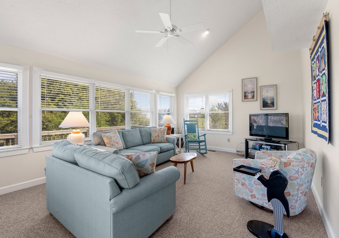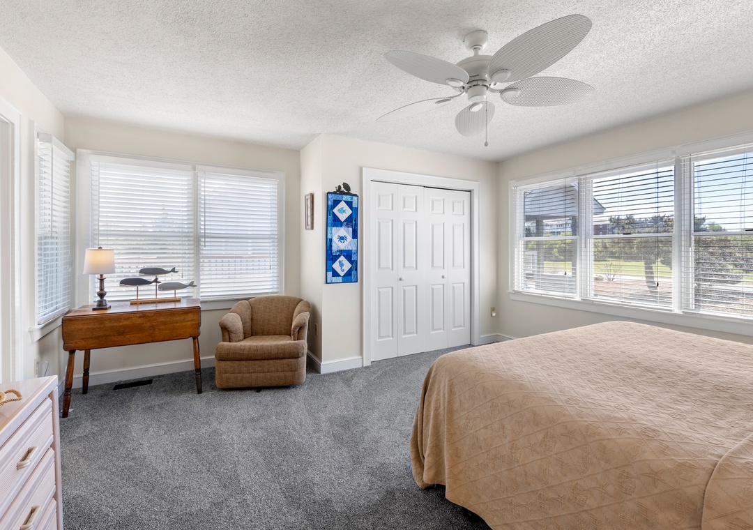 Fairway View is a cute, dog-friendly only home located on the fairway in the golf course community in The Village at Nags Head. If you love to play golf this is just the right home for you! The Nags Head Golf Links clubhouse and golf course are right across the street, and guests can take advantage of exclusive discounts at this championship level course with stunning scenery and challenging play for all skill levels.