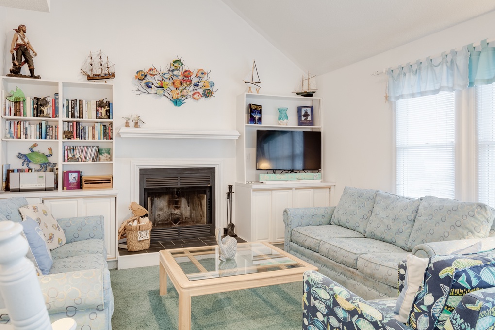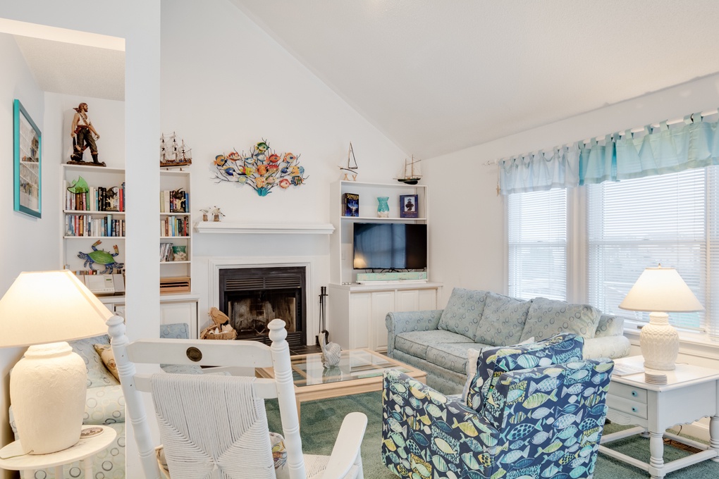 Oates Bluff is a dog-friendly vacation home overlooking the golf course in The Village at Nags Head golf community. Featuring 4 bedrooms, a recreation room complete with a pool table, and a sun deck, you will find plenty of space to relax and make memories with the family. Other amenities include Wi-Fi, televisions, a stereo with CD capabilities, a fireplace, a grill, and an outdoor shower.