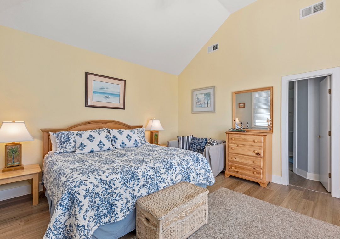 Craven Haven is a delightful retreat featuring two spacious primary suites, each complete with its own private bath for added convenience and comfort. The thoughtfully designed reverse floor plan showcases the expansive living space and great room on the top floor, where you can enjoy breathtaking views of the sound from the back porch. The outdoor decks provide the perfect vantage point to savor the unforgettable sunsets that the Outer Banks are famous for.