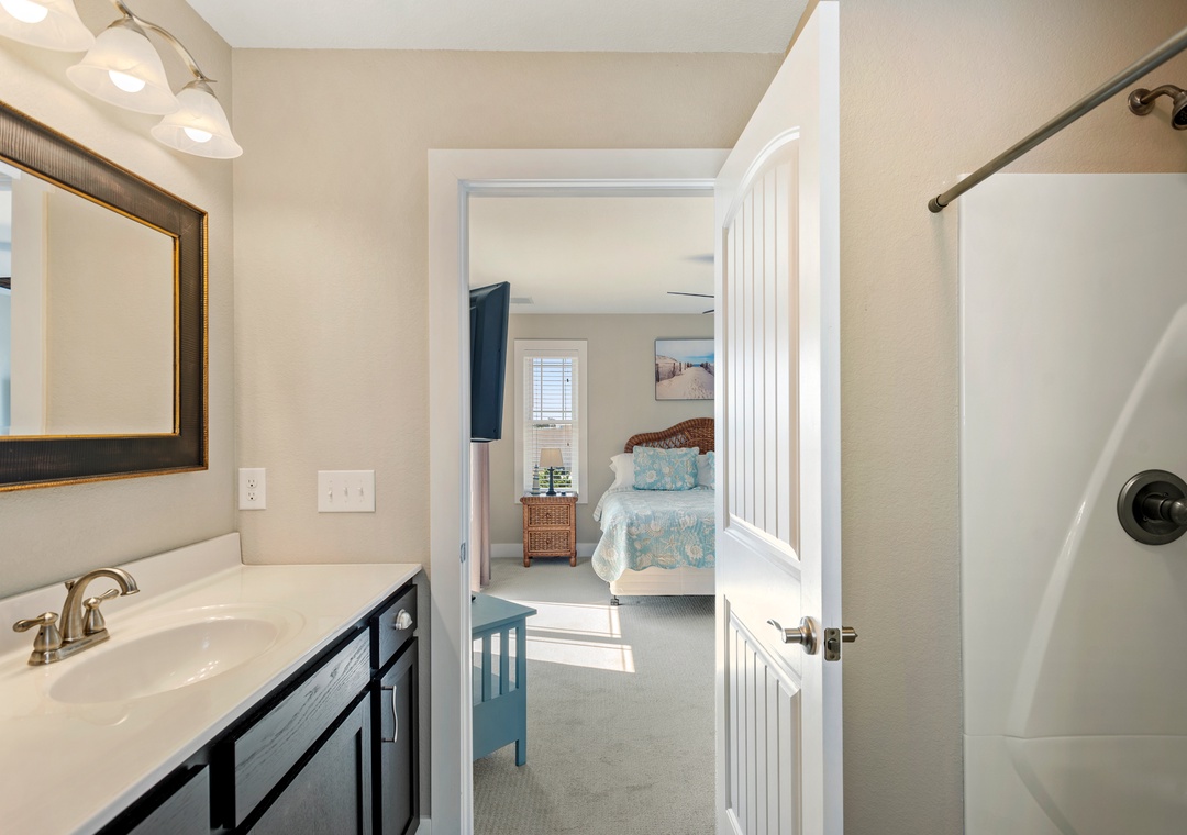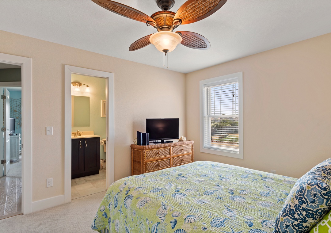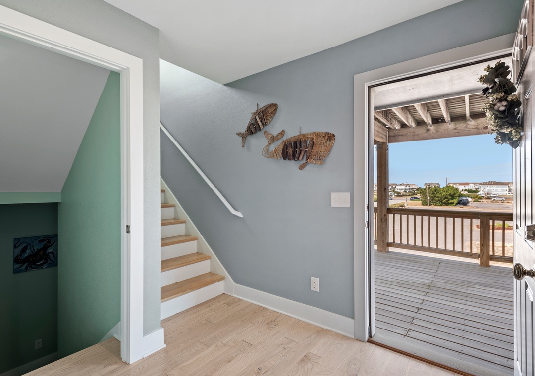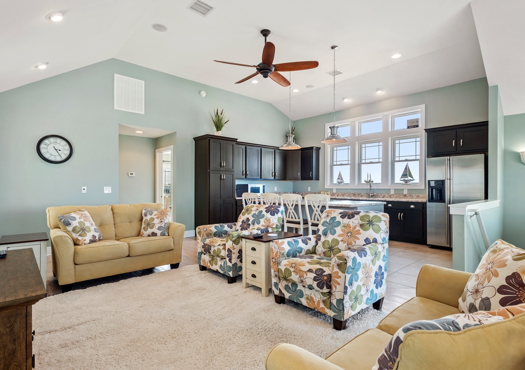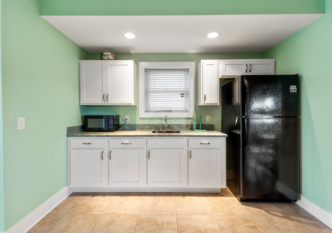 The other three bedrooms are located on the mid-level, and a media room downstairs serves as an additional common space with direct access to the private saltwater pool. After a day at the beach or exploring Nags Head, gather the family for Movie Night using the BenQ-Projector and 95-inch screen. The ground level also provides all the conveniences you'll need for fun and relaxation by the pool, including a kitchenette with full-size refrigerator and microwave for drinks and snacks, along with access to a half bath.
