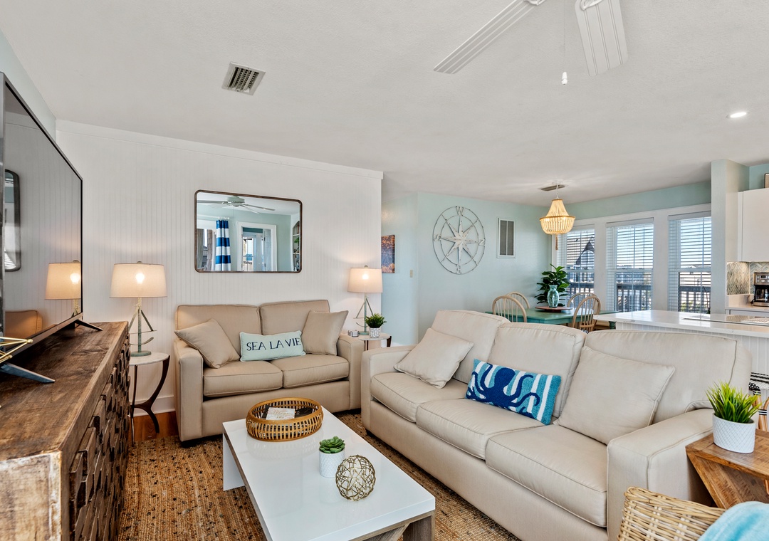 With 2 comfortable bedrooms, this oceanfront condo in Kill Devil Hills is equipped with everything you need for a memorable stay, including TVs, a surround sound stereo system, a pack-n-play, and a high chair. Experience the beauty and comfort of this remarkable retreat year after year!
