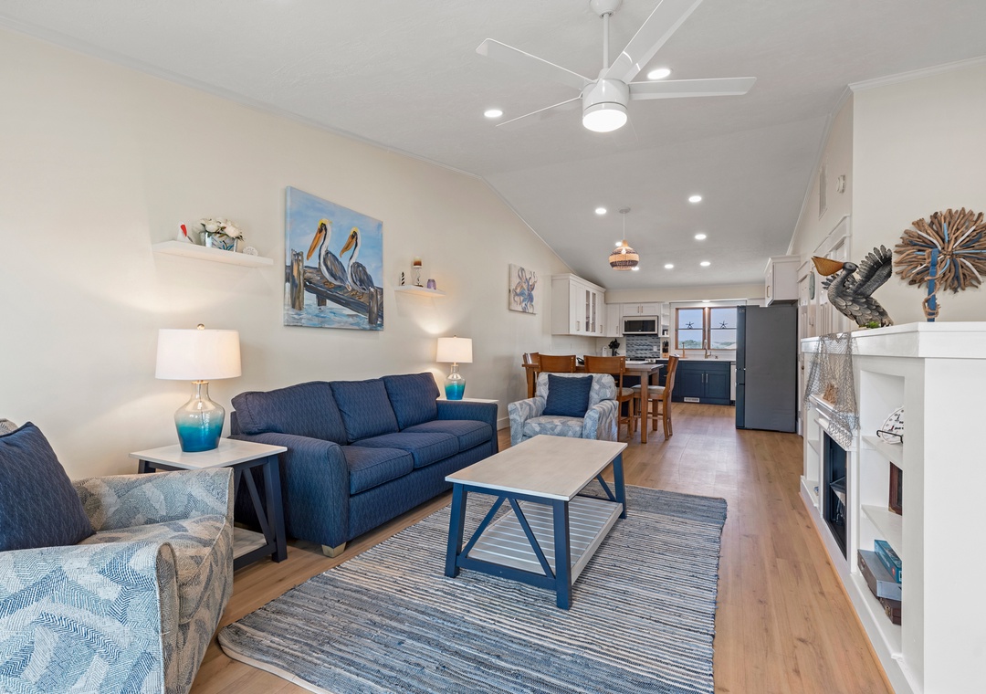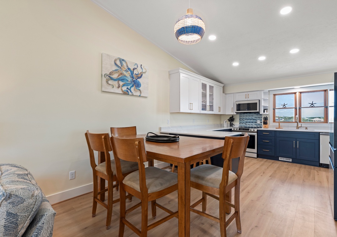 The Blue Pelican is a newly renovated semi-oceanfront townhome located in the Sea Dunes community. Situated right across from the beach, Sea Dunes is just steps away from the sparkling Atlantic Ocean. Spend the entire day on the beach or easily transition back and forth from the community pool. Guests will also have access to tennis, pickleball and basketball courts. Inside the clubhouse, you'll find a racquetball/walleyball court, game tables and even an exercise room.