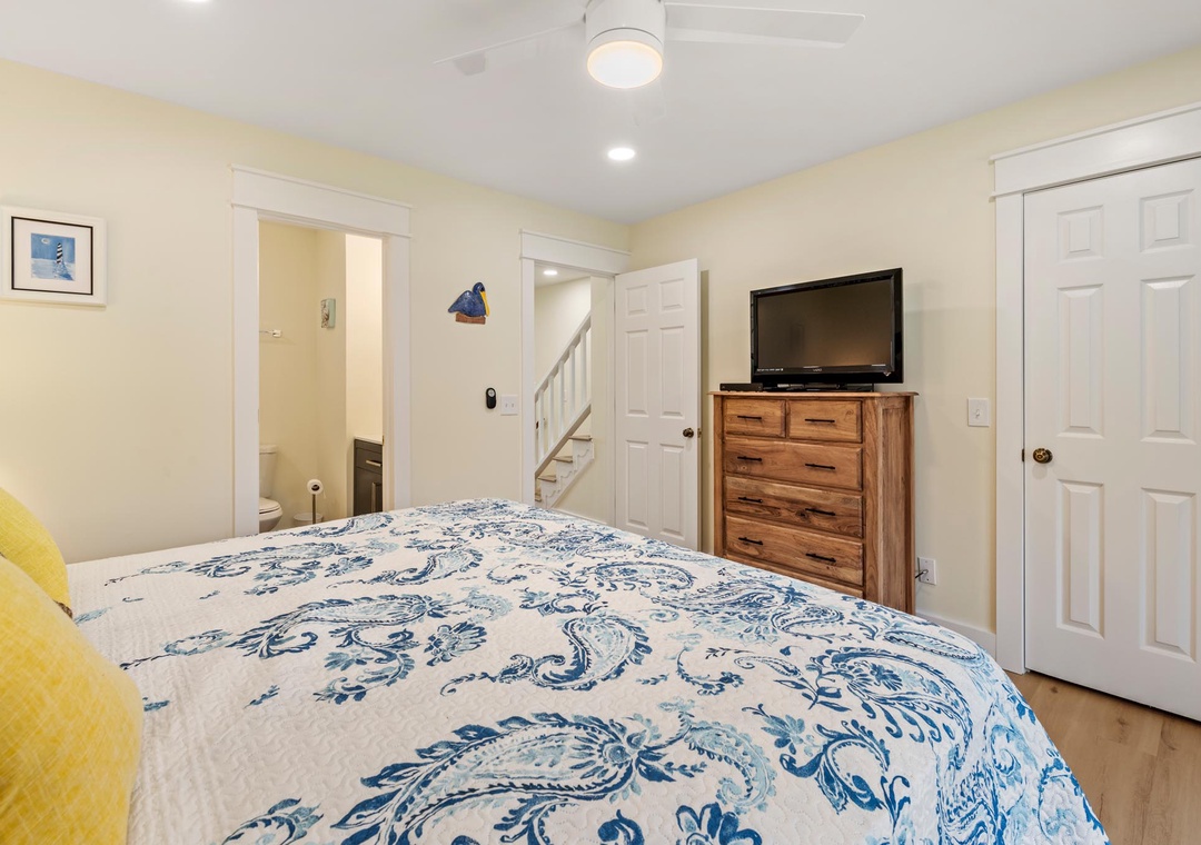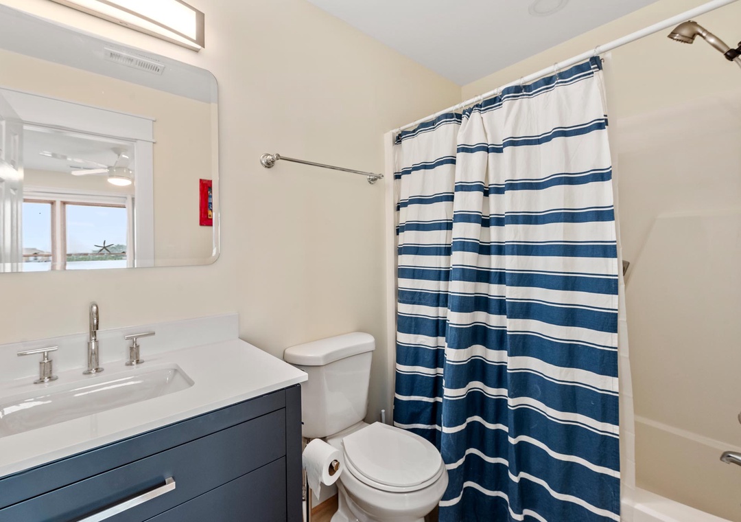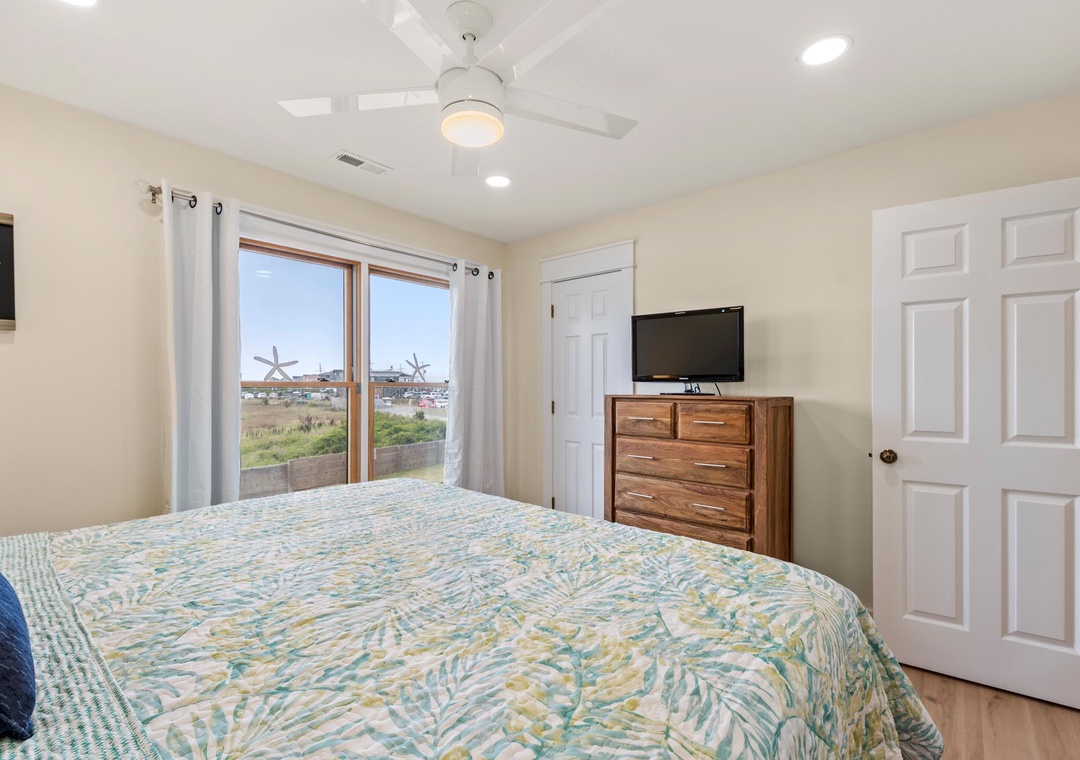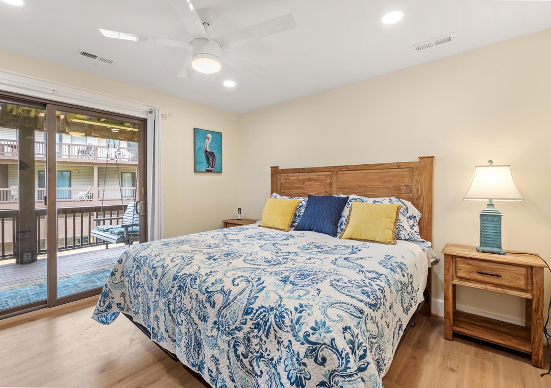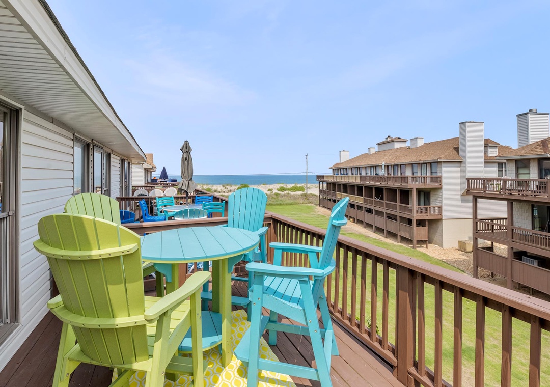 Place was clean and very comfortable. Super close to the beach, easy walk. The furnishing in the living room and both bedrooms was all new and very nice. Patio furniture on the top deck and the swing on the lower deck were lovely. Both decks face the beach and you have an unobstructed view of the ocean on the top deck - both have afternoon shade so you can enjoy dinner on the deck and not roast after being in the sun all day. Thank you for allowing us to bring our fur baby! Only thing I'd note is that the stairs are pretty steep going from the ground floor to the top floor....but it's a town house so that's to be expected. Kitchen is likely the next thing to be updated but it was well stocked and everything worked perfectly. We'd definitely come again! Thank you!- Reviewed On: 7/1/2023