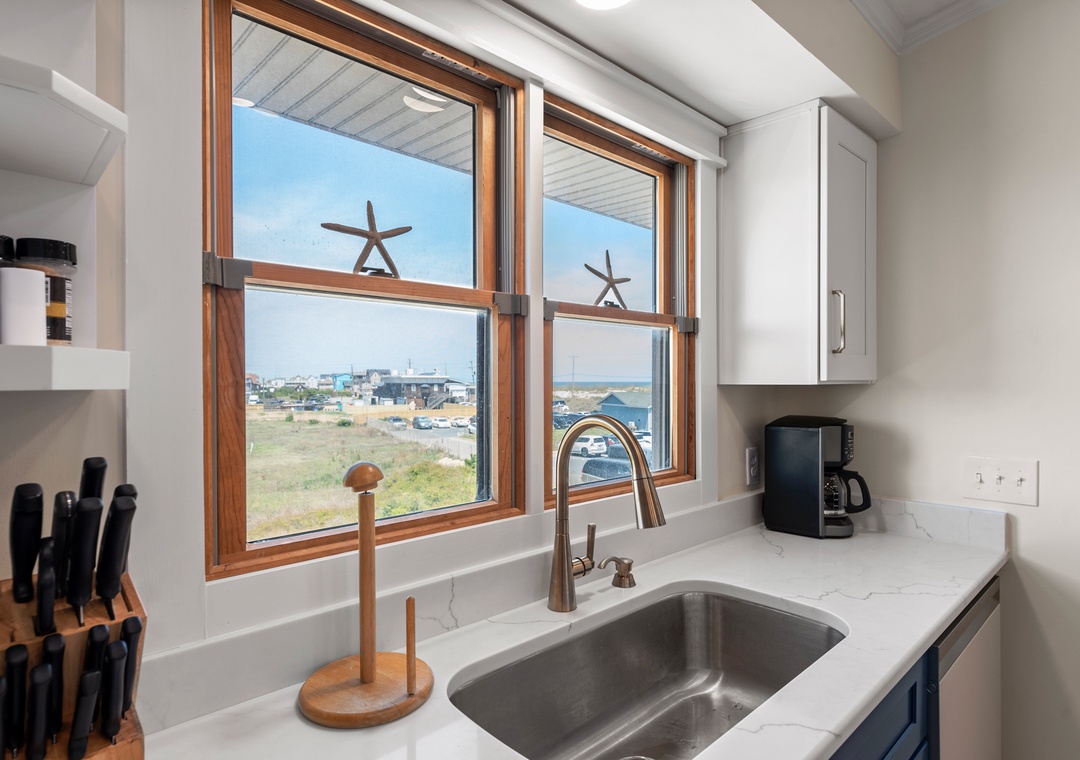 Thank you for the thoughtful review. We’re glad the location, beach access, nearby dining, well-stocked kitchen, and top-deck views added to your stay. Your note about the steps is helpful for future guests, and we’ll share your suggestion about additional kitchen towels/sponges with the owner. We hope to host you again.Village Realty staff