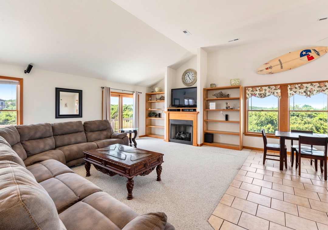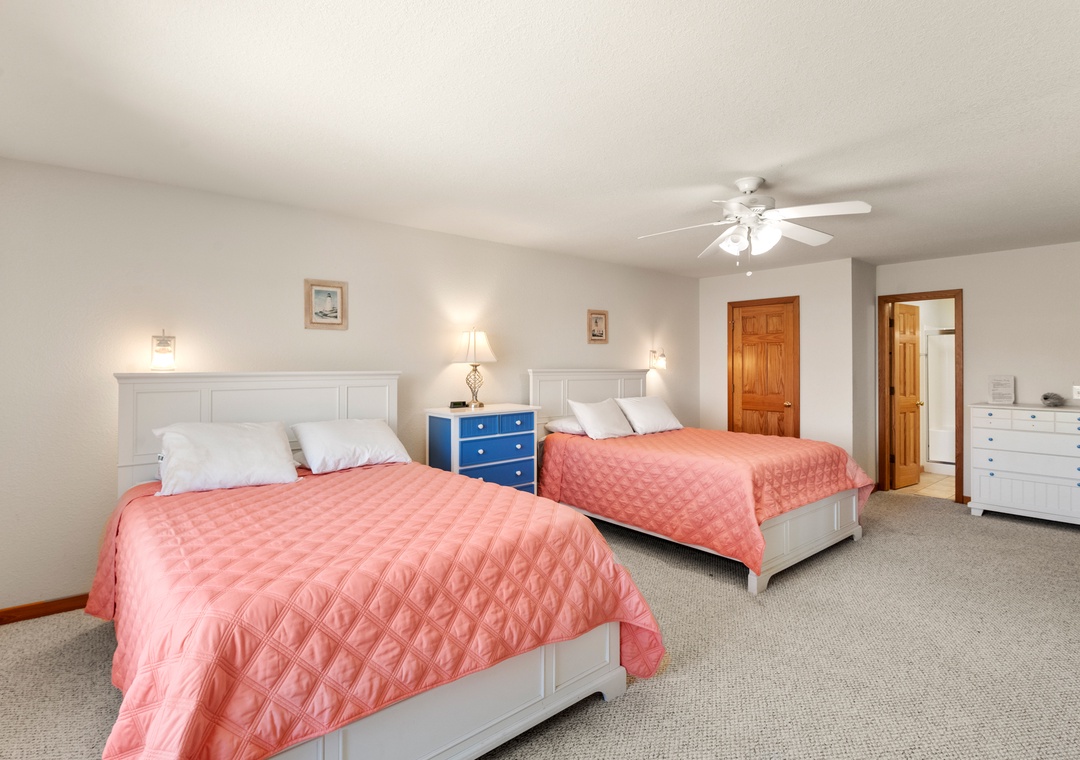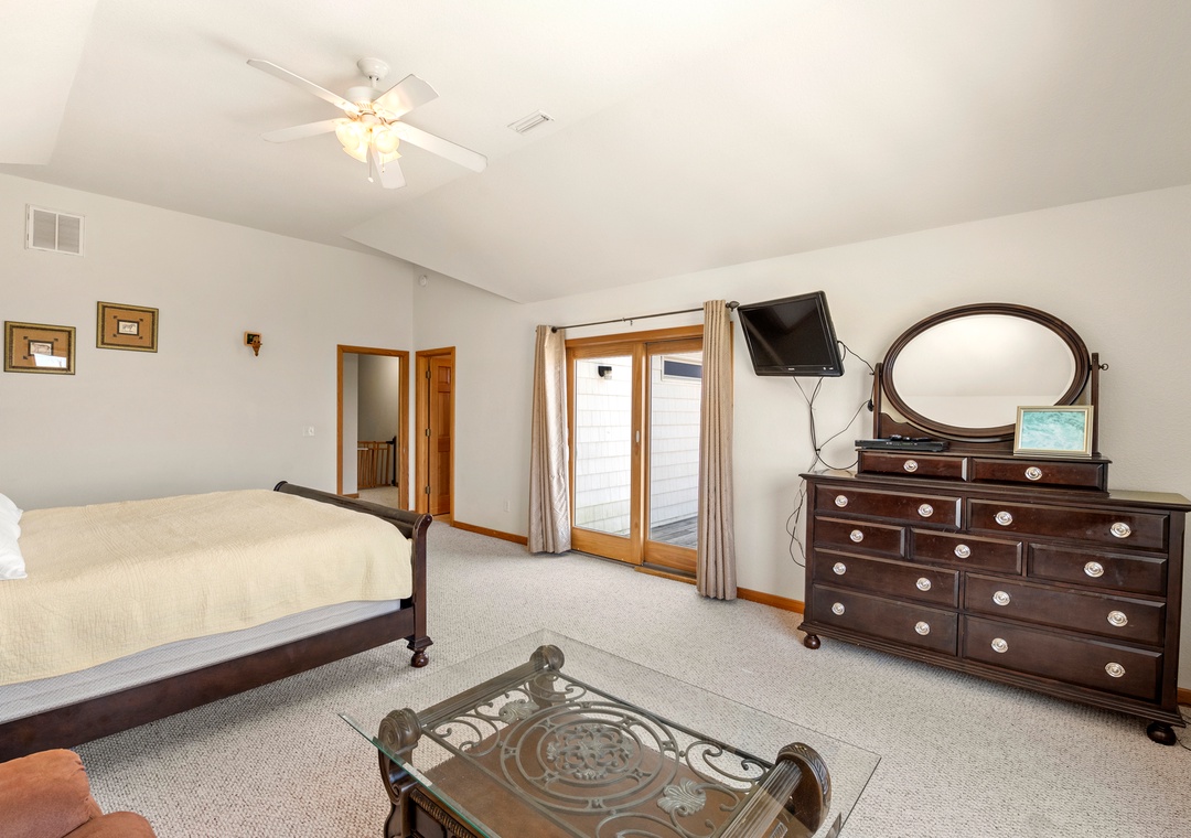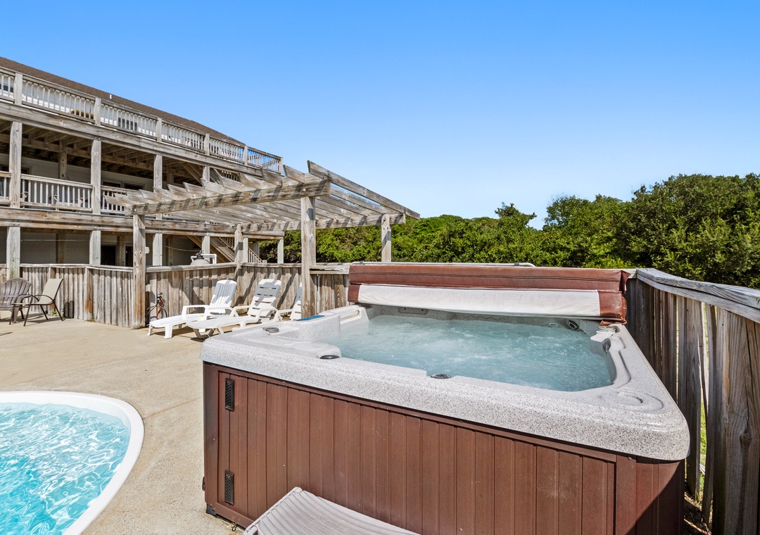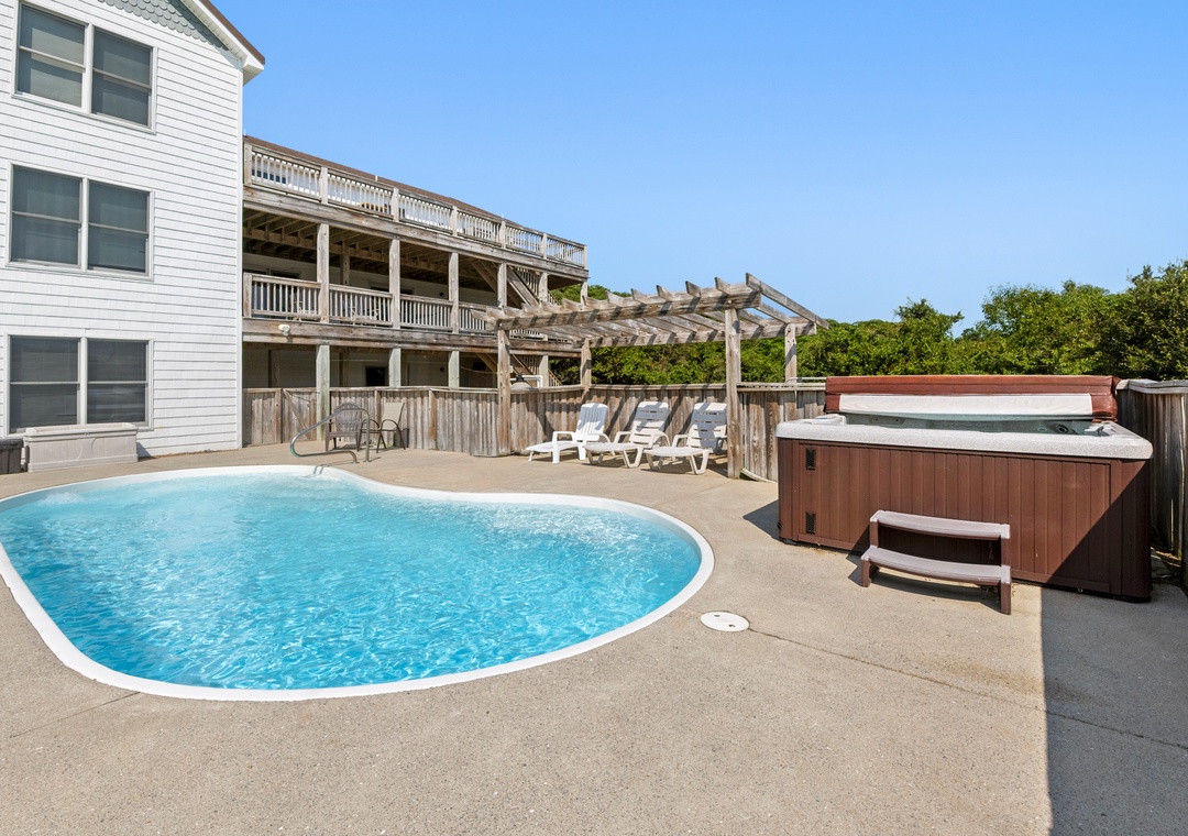 With over 6,300 square feet of indoor living space, there's room for the whole family to stay under one roof at Bohemian Breeze. Even the four-legged members of your tribe can join you at this dog-friendly retreat. The mid-level includes four additional ensuite bedrooms, all of which have deck access for effortless indoor/outdoor flow. There's also a den with diner-style booth seating and a wet bar with additional full-size fridge. Downstairs, the ground level is dedicated to fun and recreation. Host a movie night in the media room with tiered seating and a massive screen for an authentic theater experience without leaving the house. A large game room is furnished with a pool table and foosball table for hours of indoor entertainment. Keep up your fitness routine in the adjoining room with exercise equipment. Just outside, the backyard will be the hub of your family vacation. After a day at the beach, come home and splash in the 26' x 13' private pool, or challenge family and friends to a tournament on the volleyball court. If you've had enough action for one day and just need to unwind, take a relaxing soak in the bubbly hot tub.