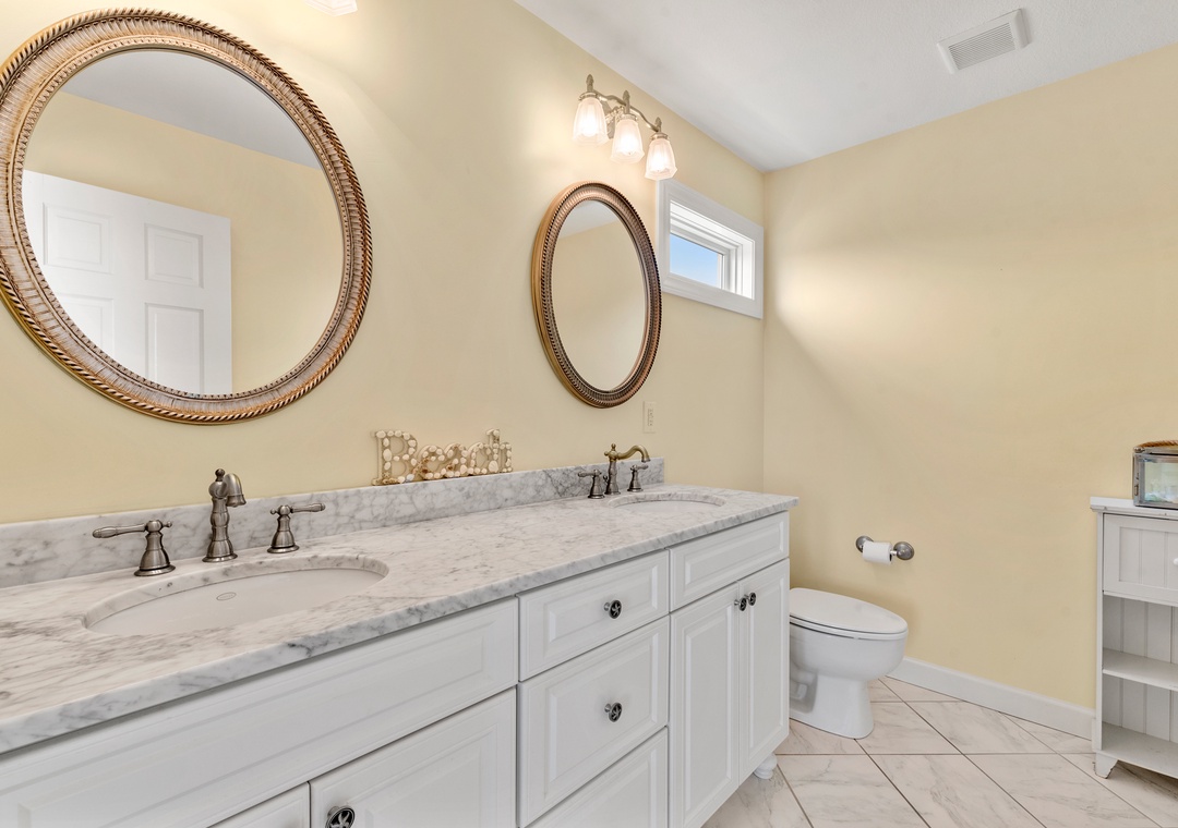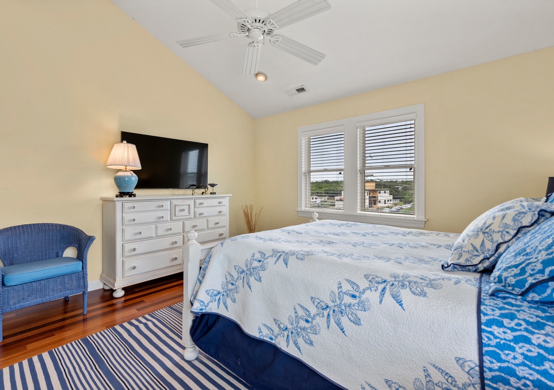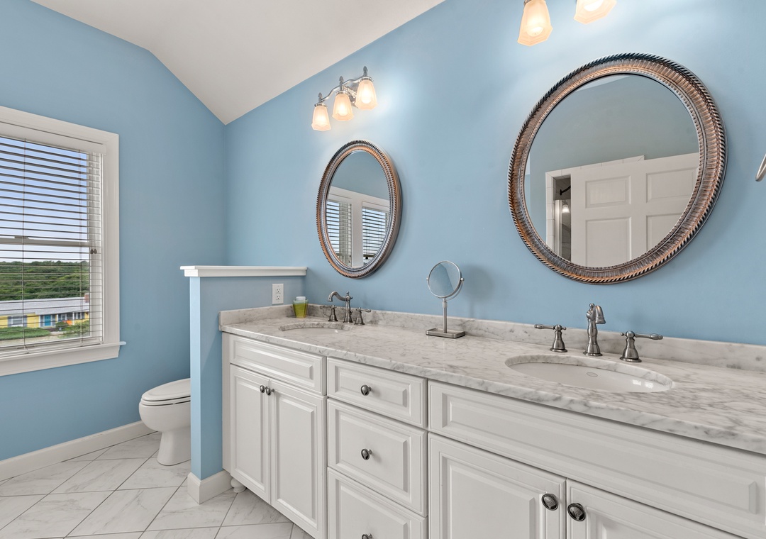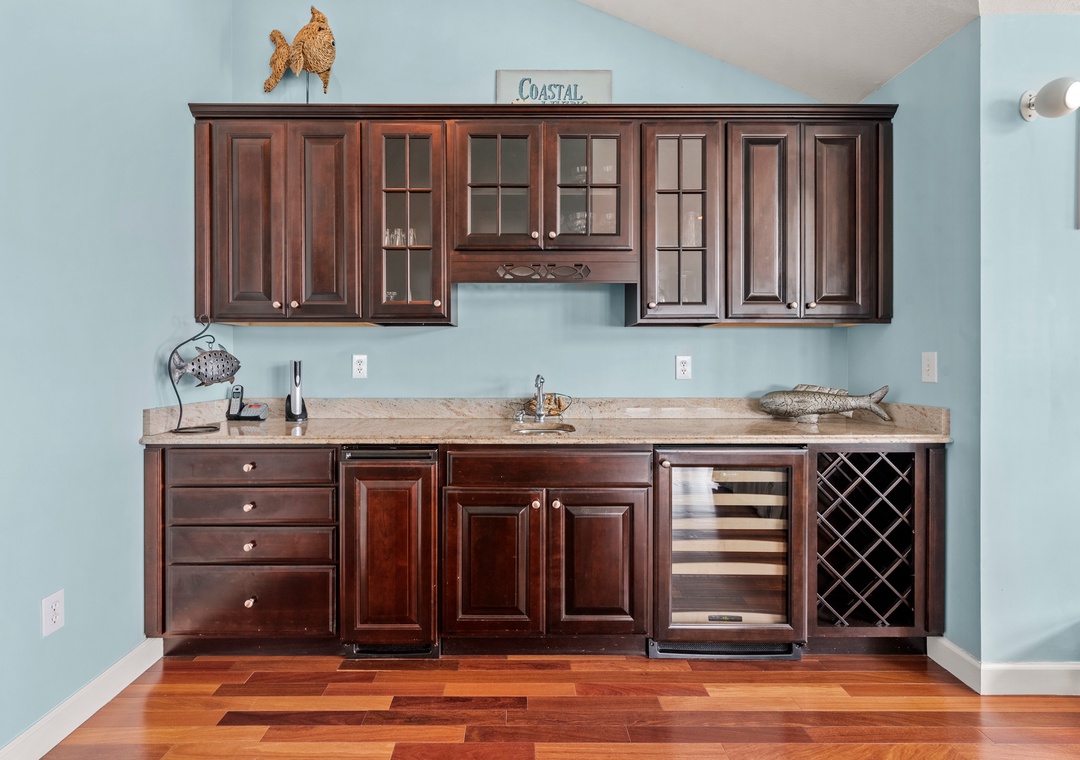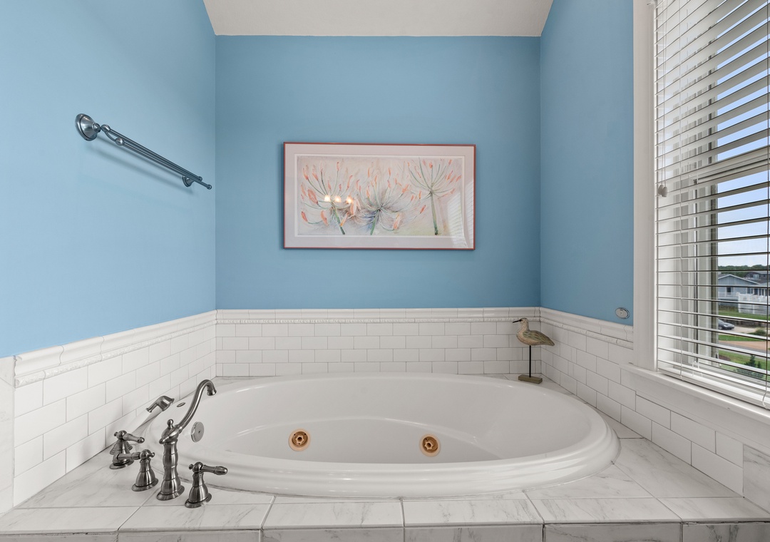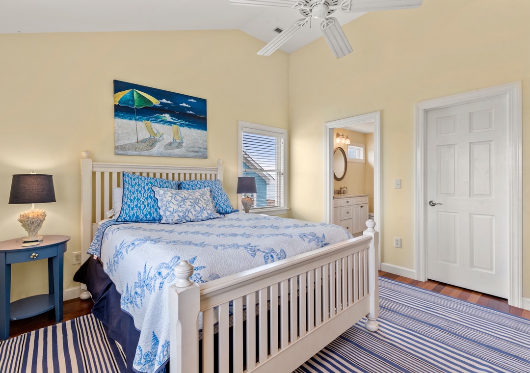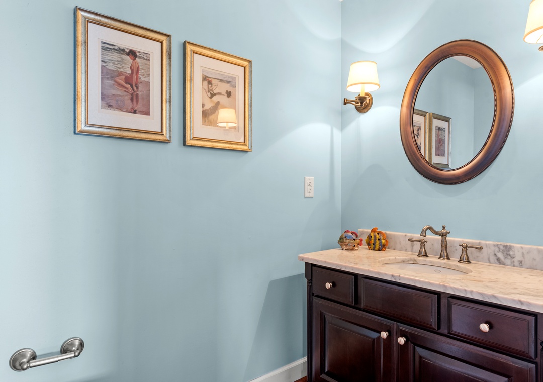 Downstairs by the pool will be the hub of your family vacation, providing everything you need for outdoor fun and relaxation. The tiki bar is equipped with an icemaker for cold drinks and a grill for cooking the catch of the day. The saltwater pool can be heated certain times of the year, ideal for Spring and Fall getaways. An outdoor half bath on the ground level provides convenient access from the pool or beach.