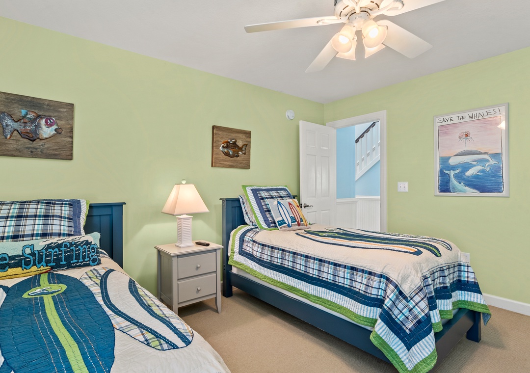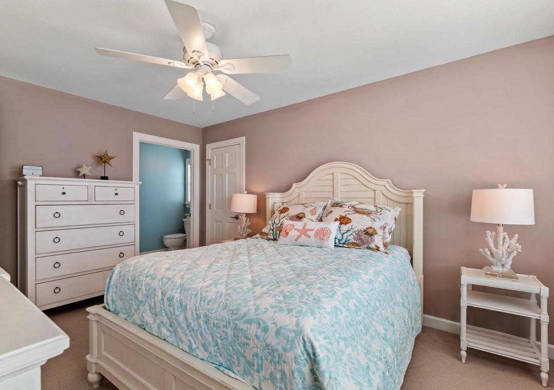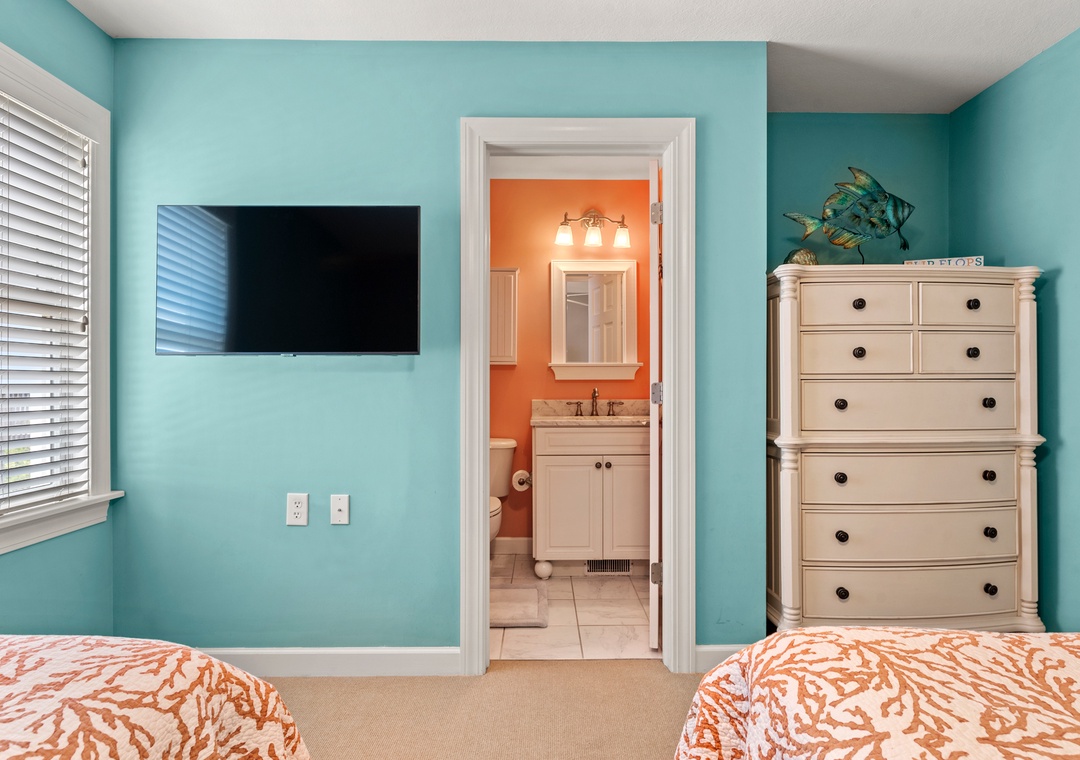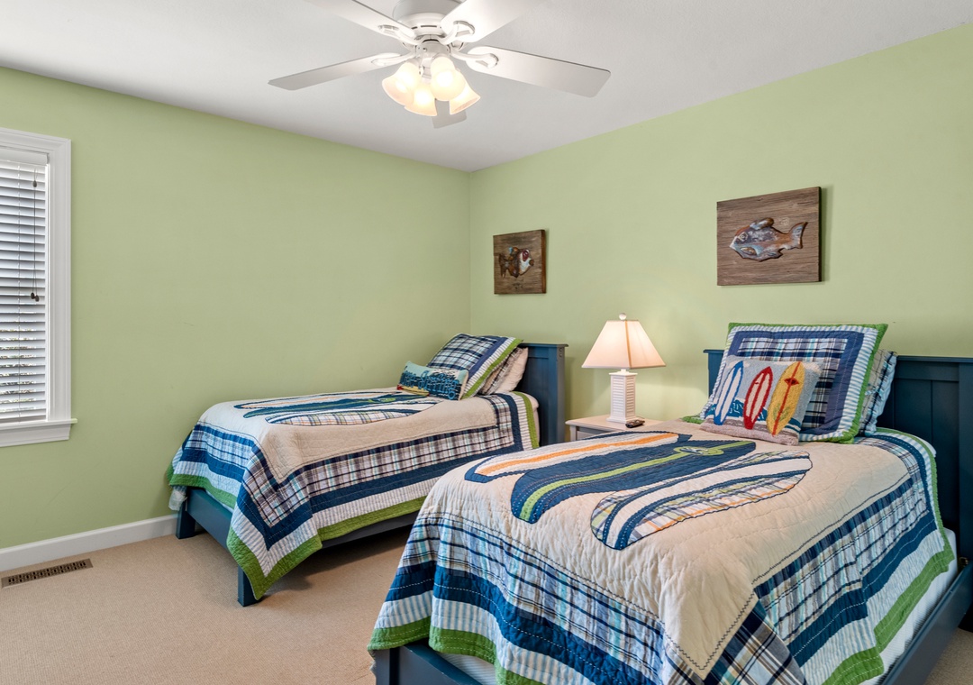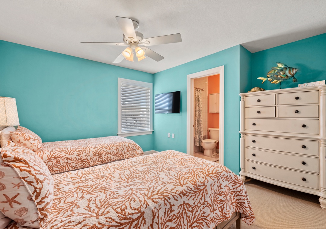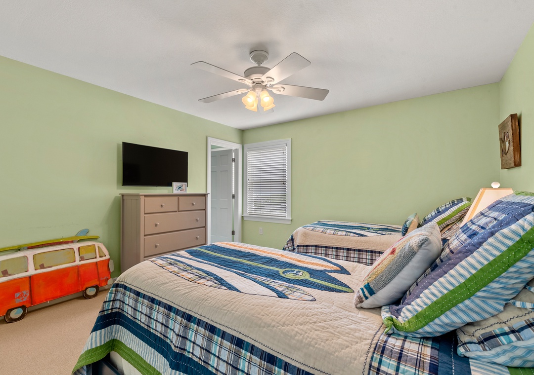 Downstairs by the pool will be the hub of your family vacation, providing everything you need for outdoor fun and relaxation. The tiki bar is equipped with an icemaker for cold drinks and a grill for cooking the catch of the day. The saltwater pool can be heated certain times of the year, ideal for Spring and Fall getaways. An outdoor half bath on the ground level provides convenient access from the pool or beach.