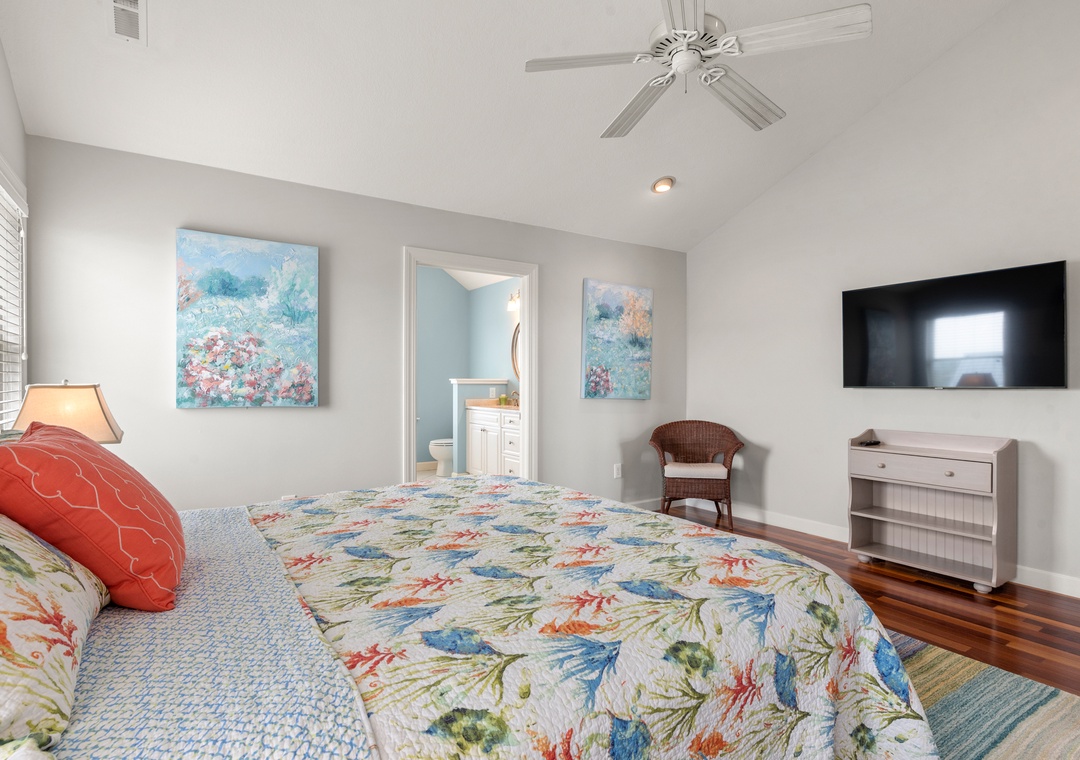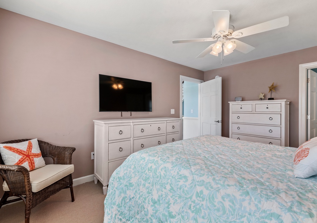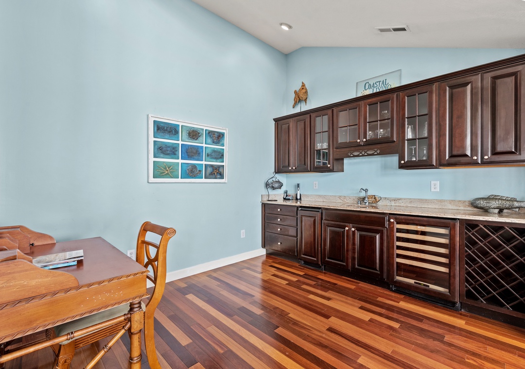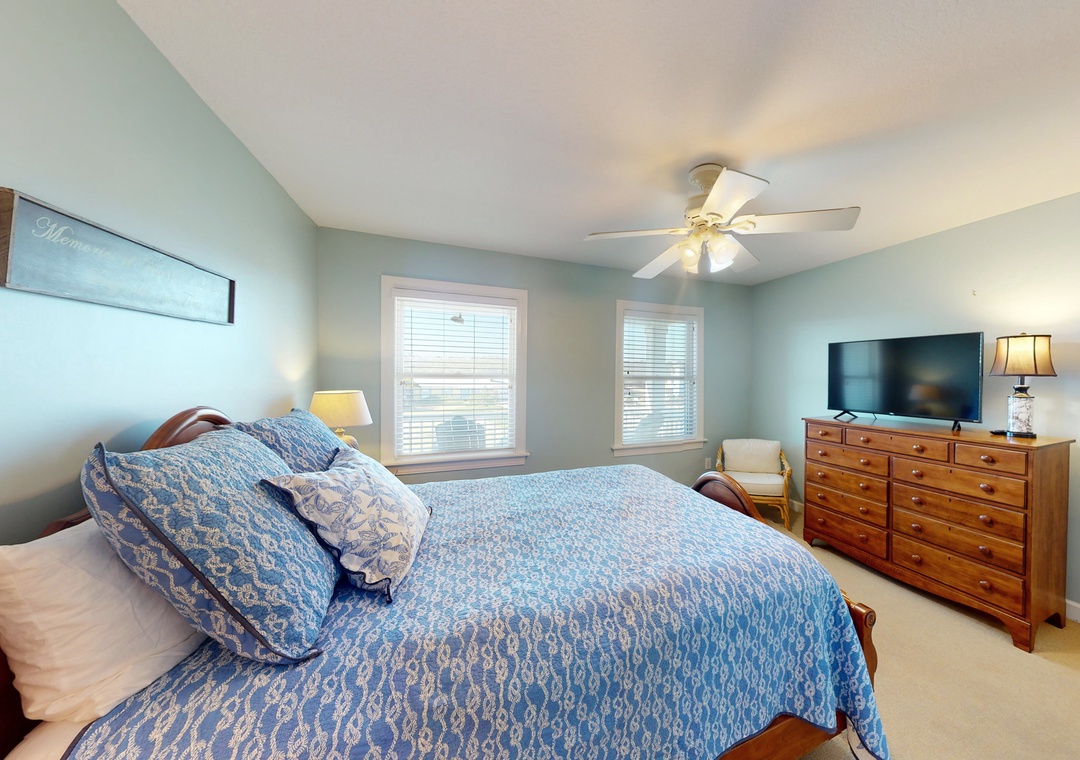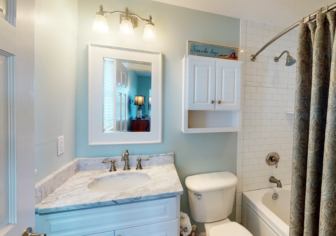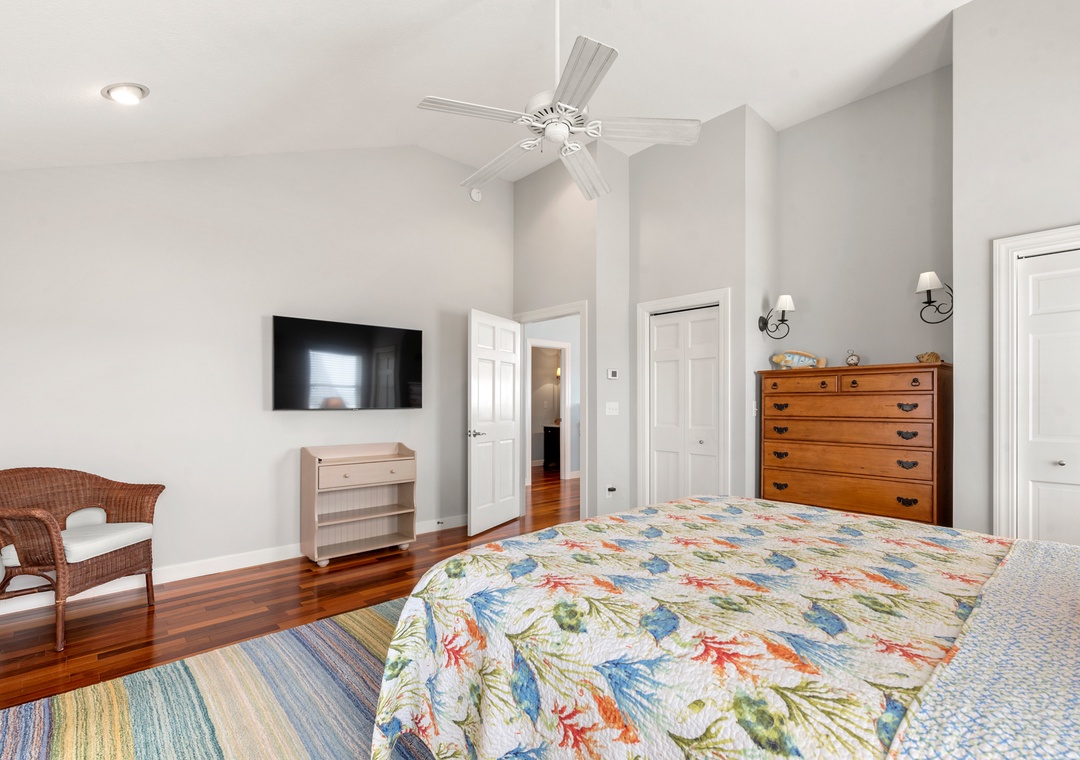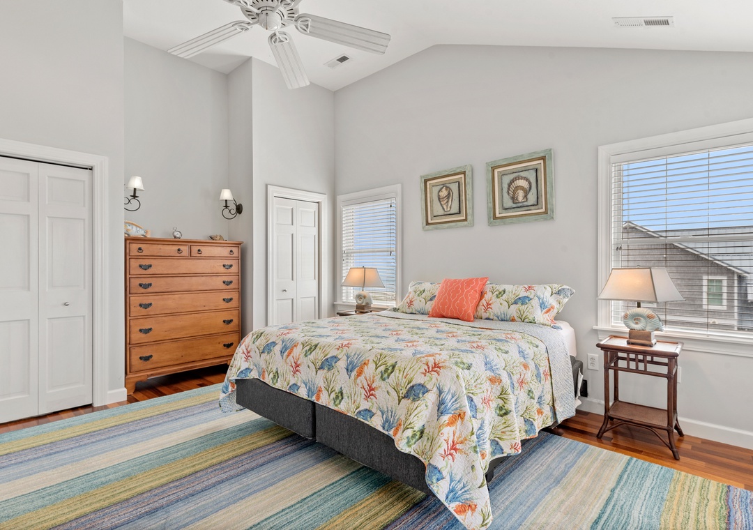 Downstairs by the pool will be the hub of your family vacation, providing everything you need for outdoor fun and relaxation. The tiki bar is equipped with an icemaker for cold drinks and a grill for cooking the catch of the day. The saltwater pool can be heated certain times of the year, ideal for Spring and Fall getaways. An outdoor half bath on the ground level provides convenient access from the pool or beach.