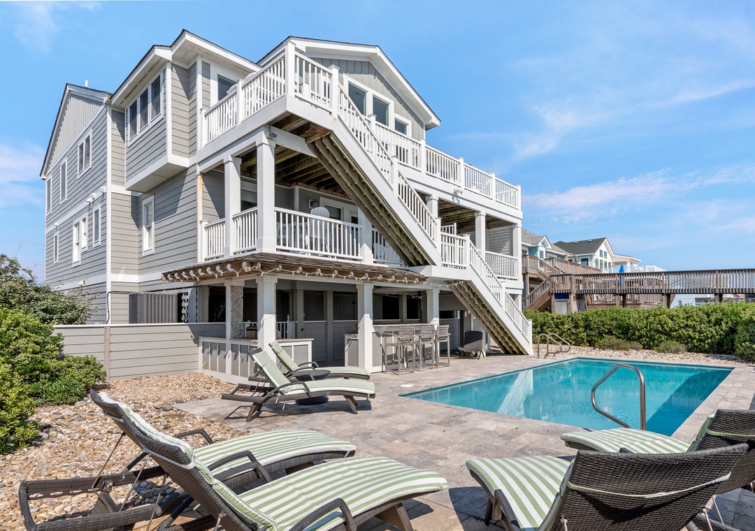 The house was just what my family needed, and for the most part it looked just like the pictures. There were no cobwebs outside as we usually find in OBX houses. However, the Tiki Bar could really use a cleaning between guests, and we were disappointed that there’s no ice maker or refrig in the tiki Bar as mentioned in the description. Towel bars in the bathrooms and the pool deck shower room would be helpful. The composite decks were beautiful.- Reviewed On: 7/1/2023