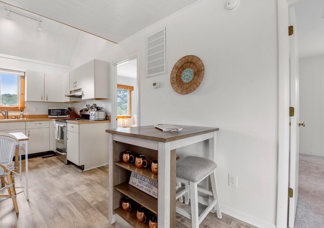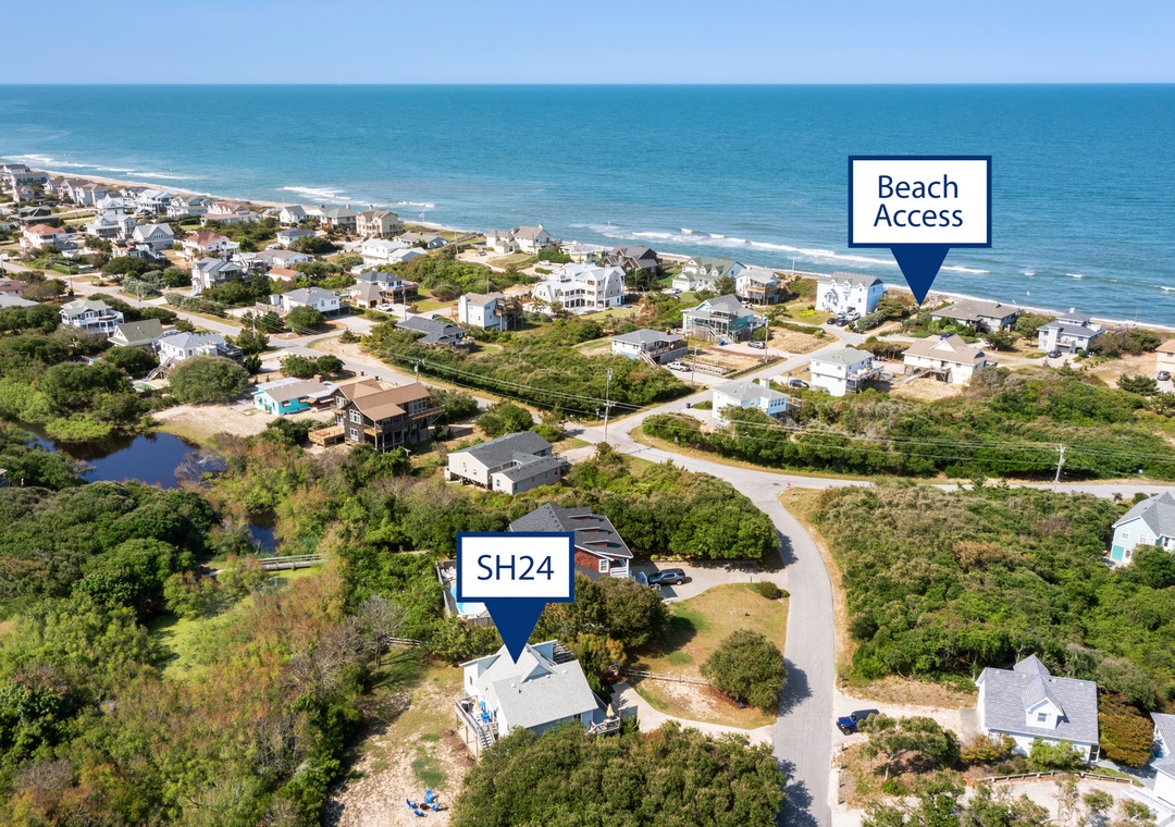 Getting to the beach will be a breeze, with just a three minute walk to the nearby Mockingbird Lane beach access. Take a stroll along the neighborhood foot path and over the quaint bridge that crosses the pond to the Southern Shores community park. Everything else you'll need is just three miles south, where you'll find grocery and convenience stores, specialty shops and boutiques. Popular dining options include Rundown Cafe and Steamers Restaurant.
