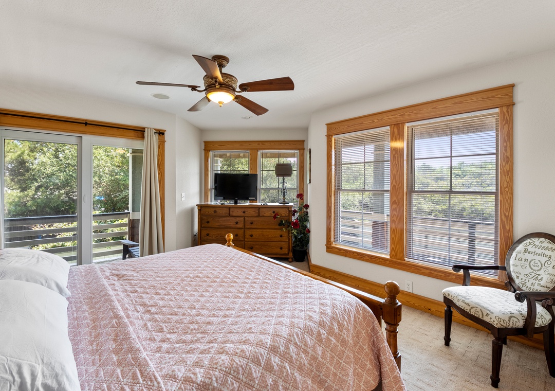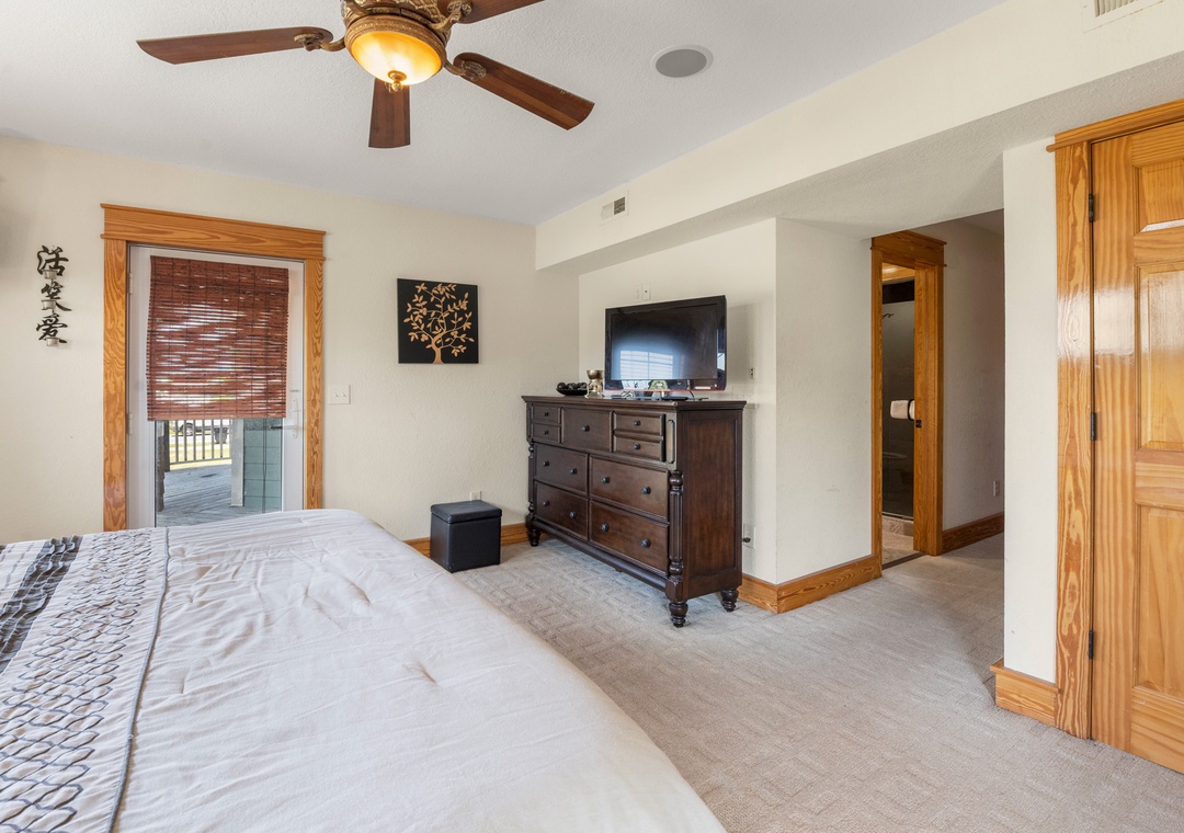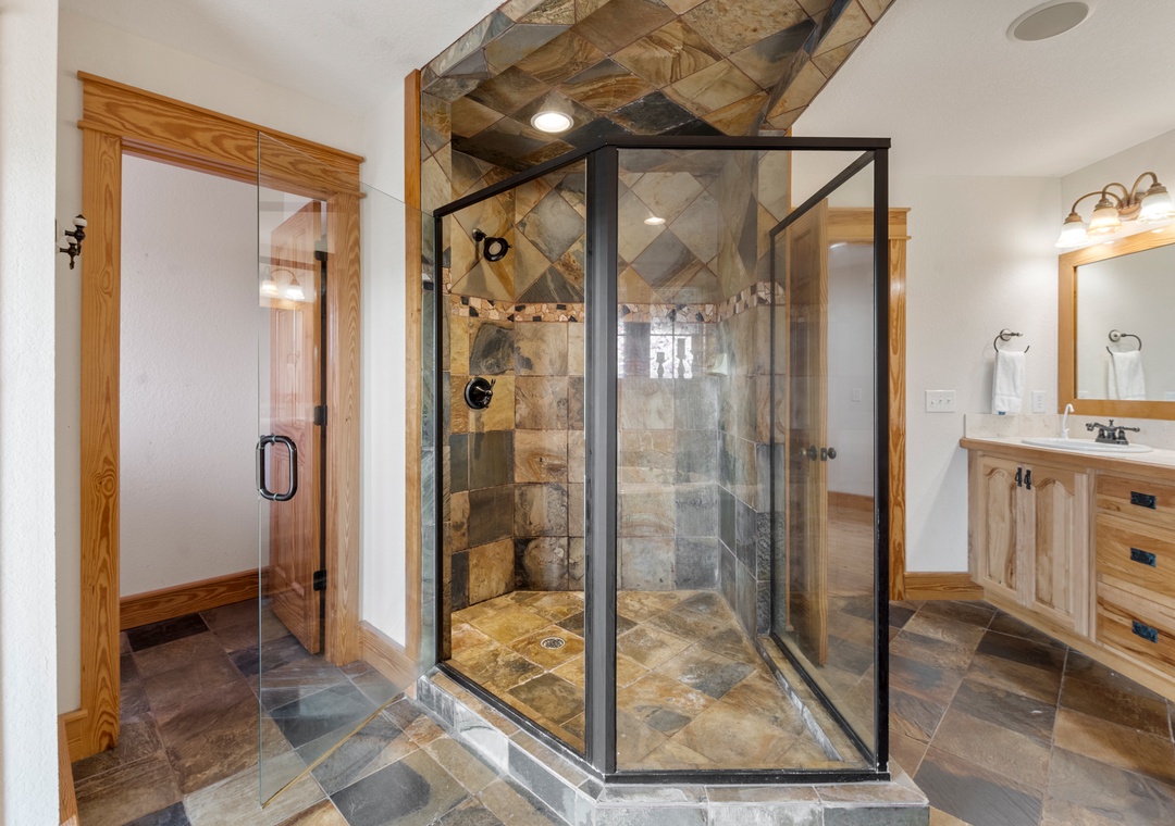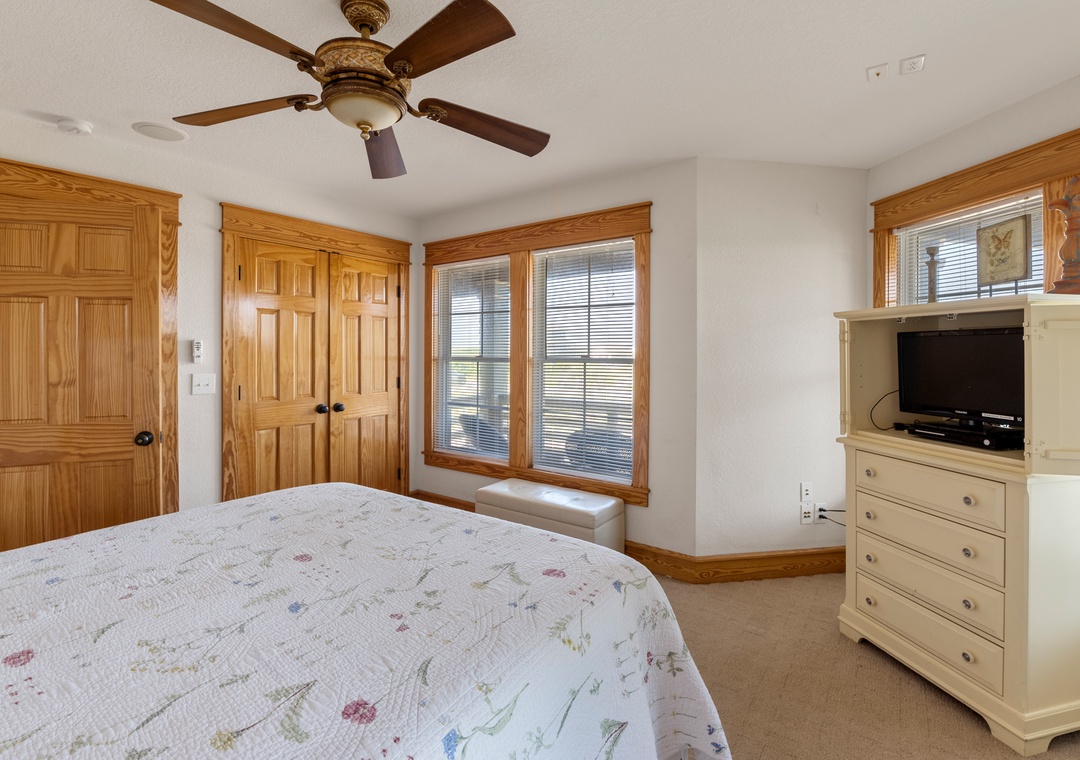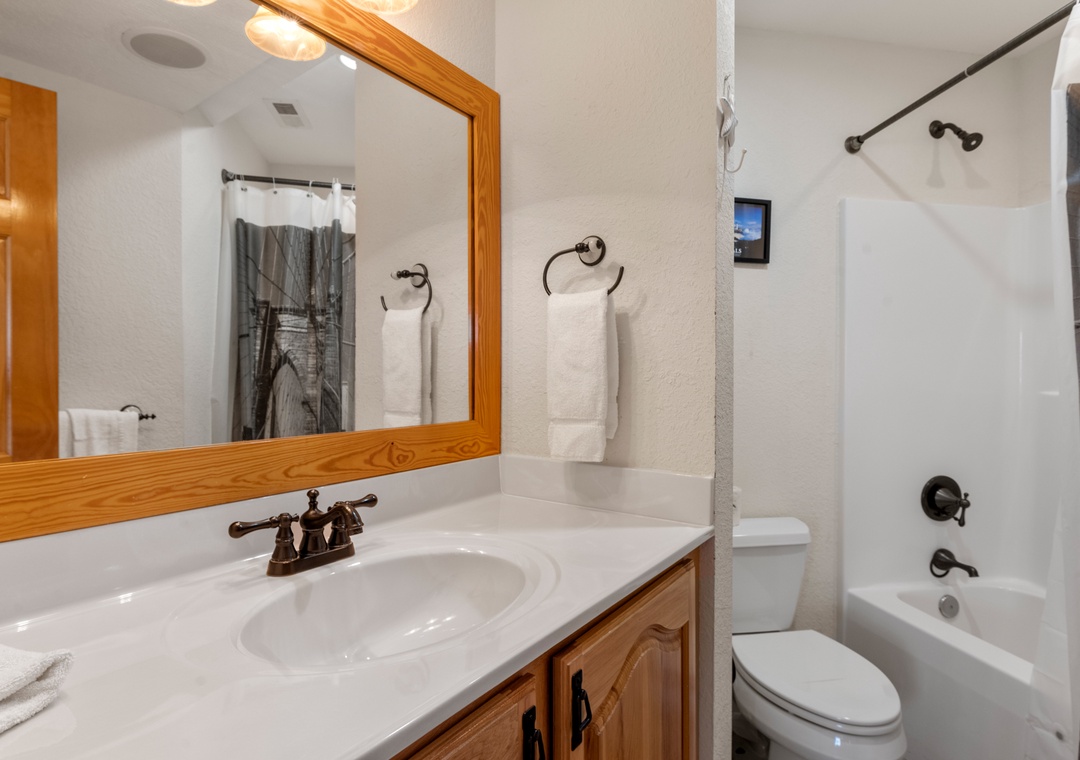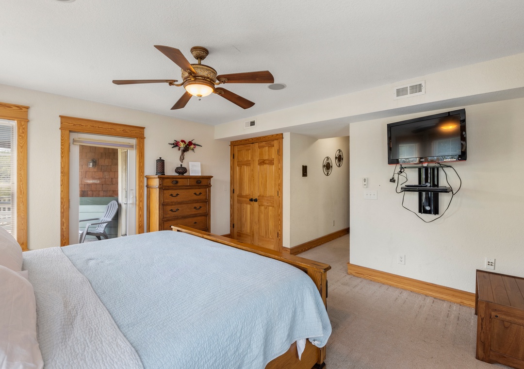The good times continue downstairs in the rec space where you can show off your skills on the billiard table or play your best hand at the poker table. Go one-on-one in air hockey or foosball, or try to beat the highest score on the arcade games. For more laid-back entertainment, host a movie night in the theater with tiered, electric leather seating. A wet bar and full-size fridge on the ground level is perfect for grabbing a snack or a refill during the game or movie. At the end of the night, retreat to the stunning primary suite that features a huge private bath with a jetted tub and spacious walk-in shower. Six additional bedrooms, all of which are ensuite and provide deck access, will comfortably accommodate multiple or extended families. Guests with mobility issues can skip the stairs and use the elevator, which is also convenient for unpacking luggage and groceries.