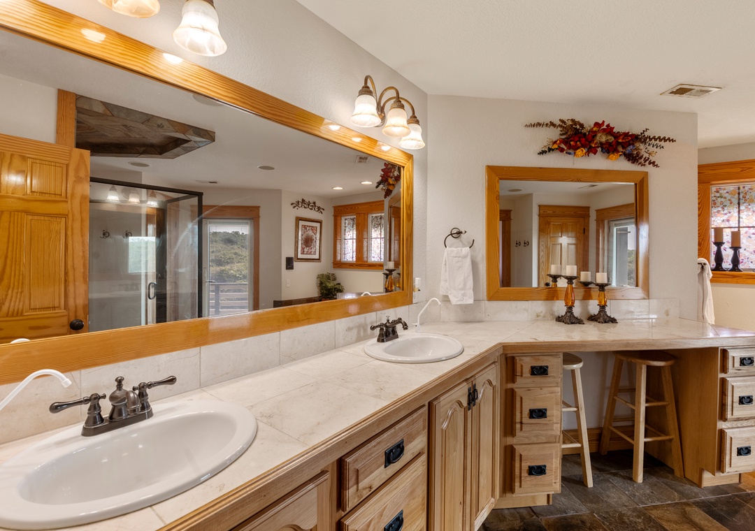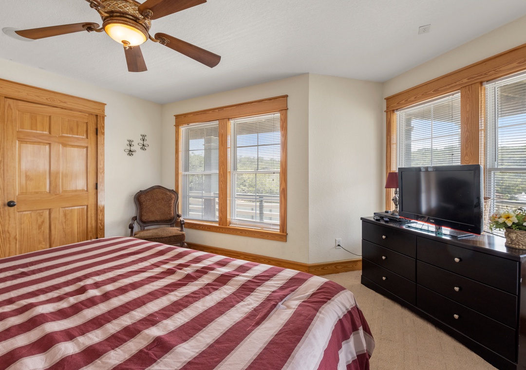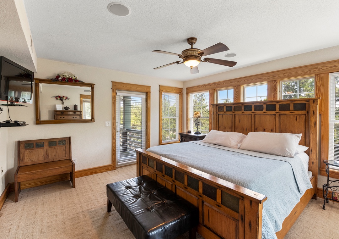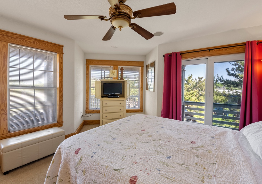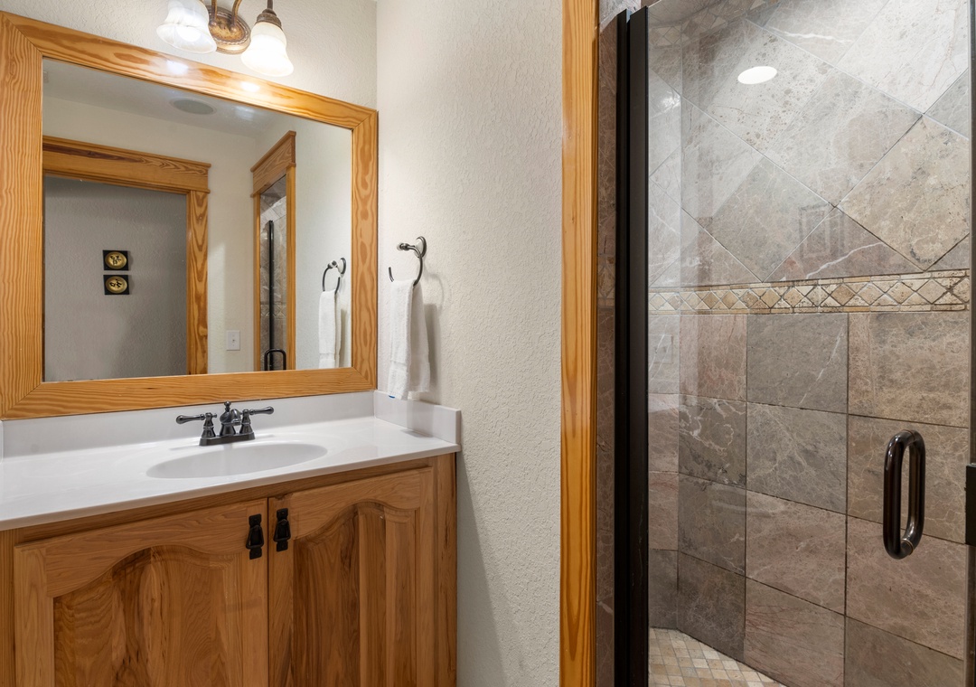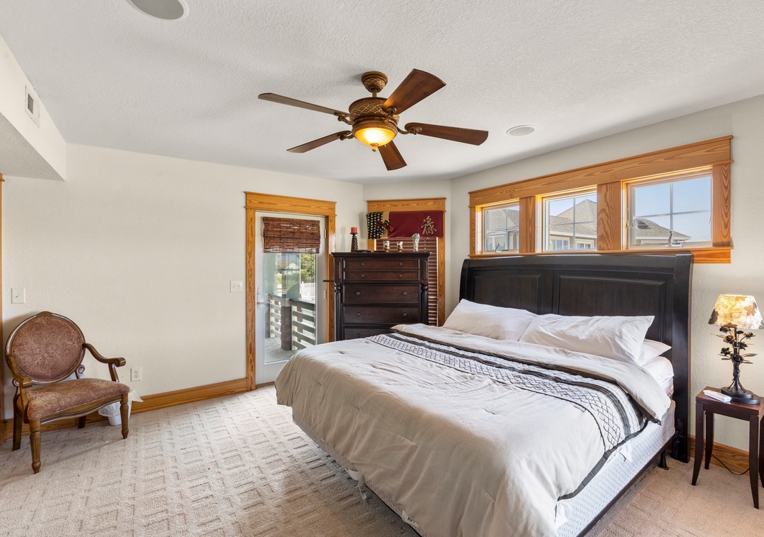 The good times continue downstairs in the rec space where you can show off your skills on the billiard table or play your best hand at the poker table. Go one-on-one in air hockey or foosball, or try to beat the highest score on the arcade games. For more laid-back entertainment, host a movie night in the theater with tiered, electric leather seating. A wet bar and full-size fridge on the ground level is perfect for grabbing a snack or a refill during the game or movie. At the end of the night, retreat to the stunning primary suite that features a huge private bath with a jetted tub and spacious walk-in shower. Six additional bedrooms, all of which are ensuite and provide deck access, will comfortably accommodate multiple or extended families. Guests with mobility issues can skip the stairs and use the elevator, which is also convenient for unpacking luggage and groceries.