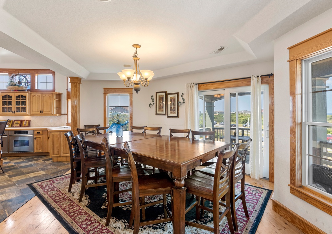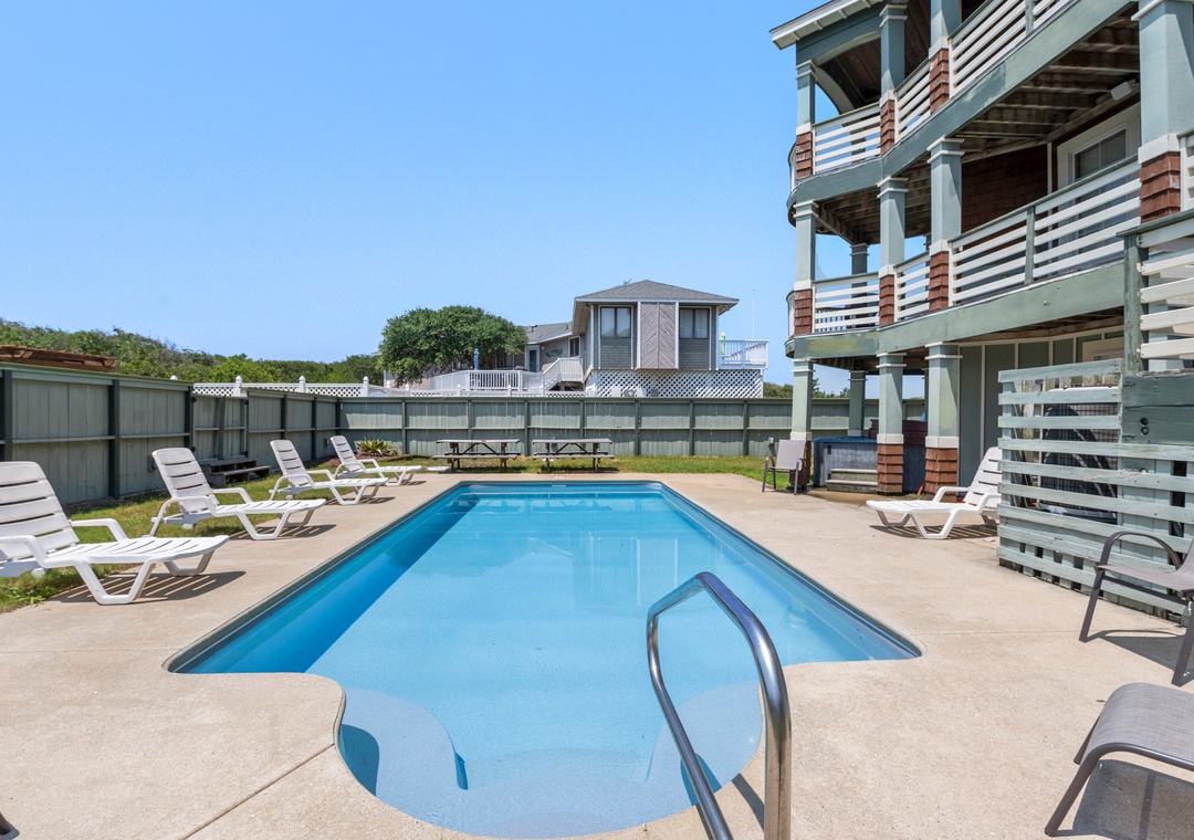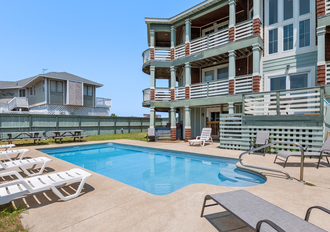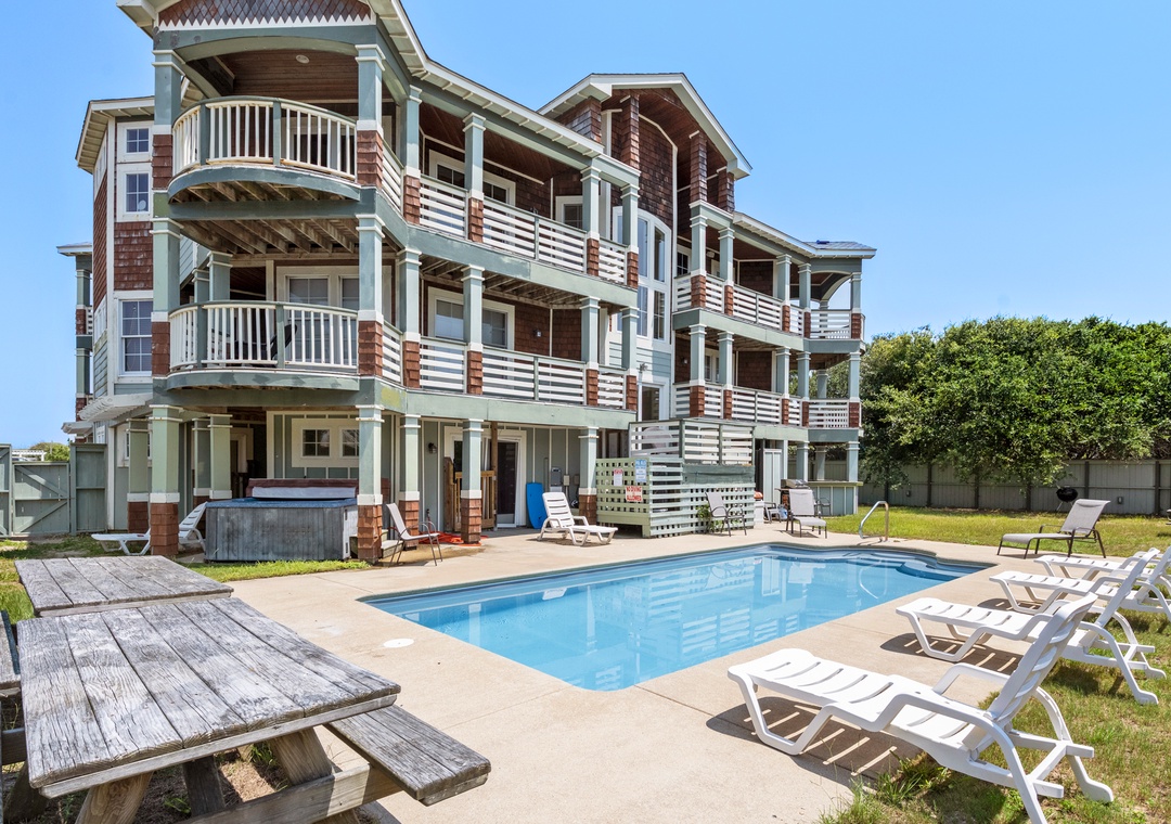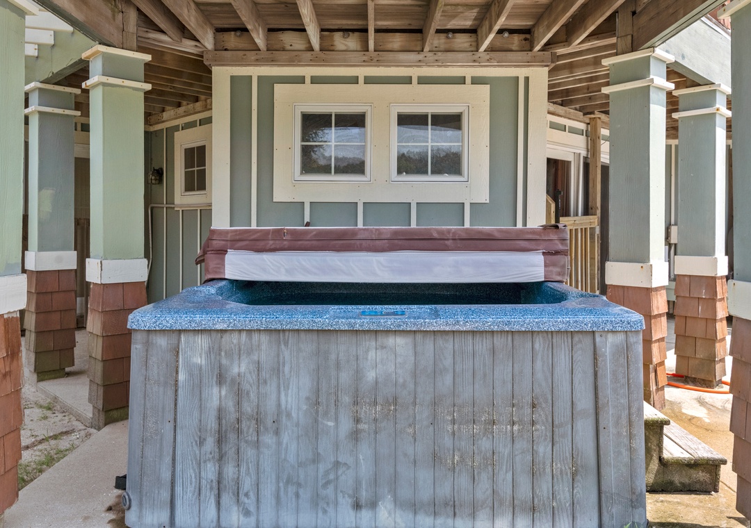 Outside, you'll find a fully enclosed backyard oasis for around-the-clock fun and relaxation. Take a dip in the 23' x 13' private pool or unwind with a soak in the hot tub before grabbing a refreshing beverage from the tiki bar. Two levels of covered, wrap-around decking provide additional space for enjoying the fresh air and salty ocean breezes.