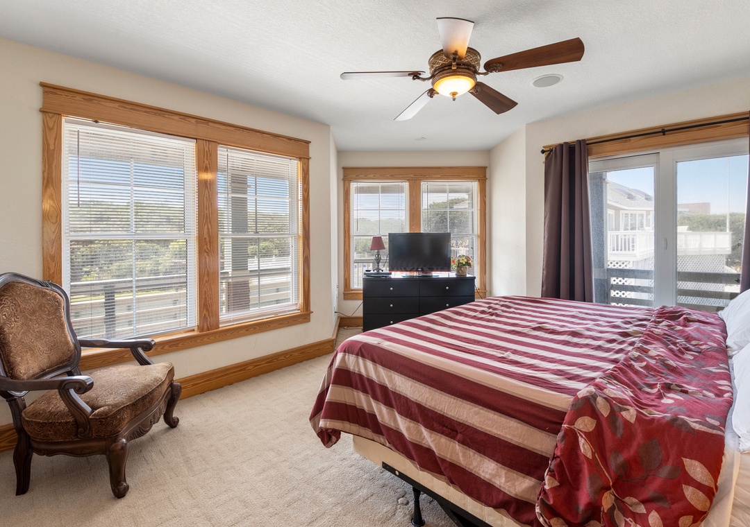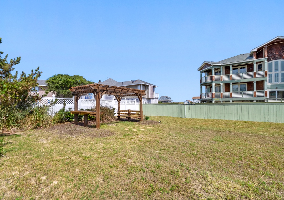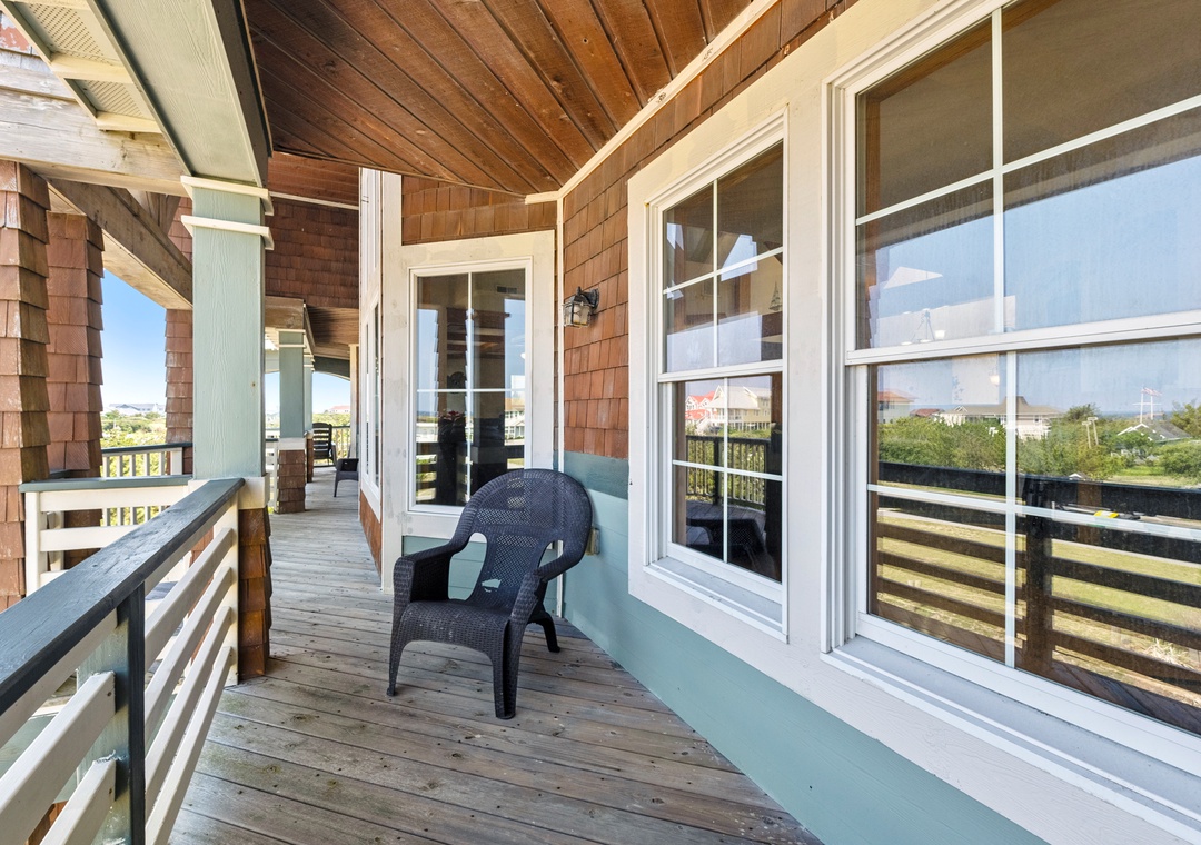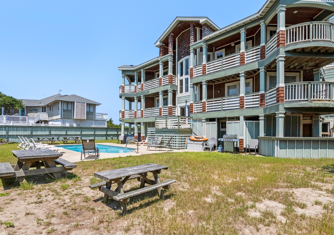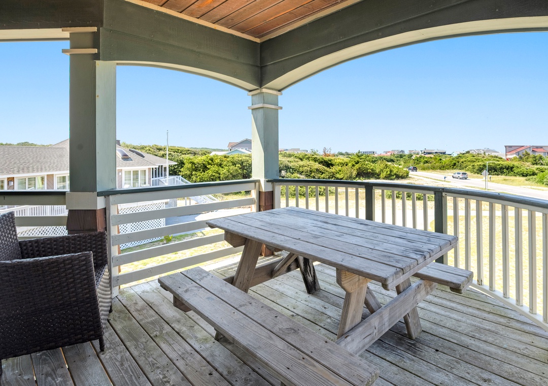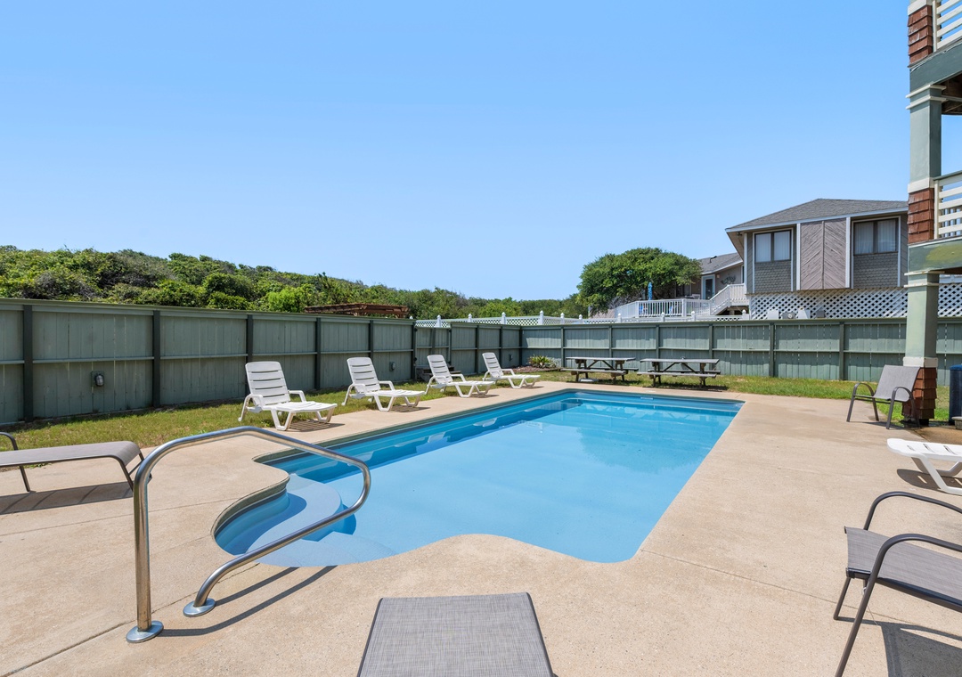 Outside, you'll find a fully enclosed backyard oasis for around-the-clock fun and relaxation. Take a dip in the 23' x 13' private pool or unwind with a soak in the hot tub before grabbing a refreshing beverage from the tiki bar. Two levels of covered, wrap-around decking provide additional space for enjoying the fresh air and salty ocean breezes.