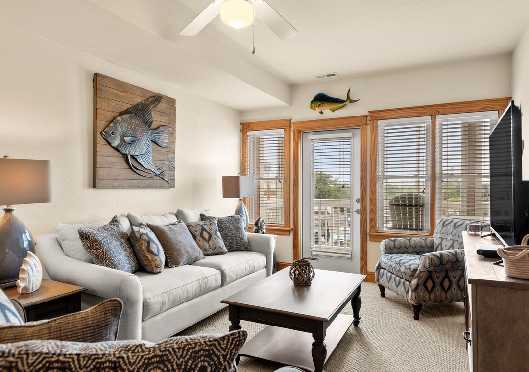 Sound front living at its finest awaits you and your family at Knot Of Sound Mind. Overlooking the Roanoke Sound enjoy the sound views and a sunset that you will never forget from your private balcony. Don't worry about not bringing your favorite four-legged friend with you, Knot Of Sound Mind is a dog-friendly OBX vacation home! The kitchen is fully equipped and features breakfast bar seating and everything you could need to prepare meals on your Outer Banks vacation and a living area to relax in and watch some favorite movies and plan your next days adventures.