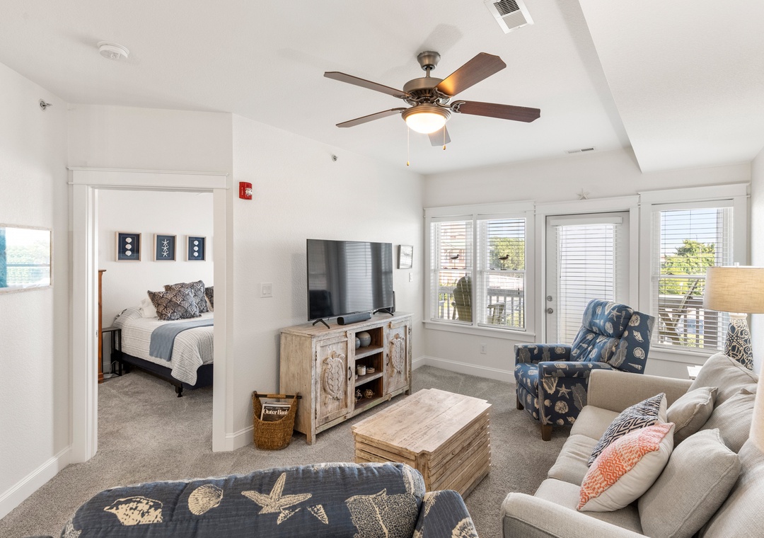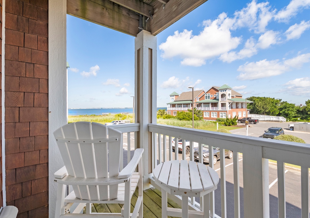 Sunset Sound - the name says it all! This waterfront condo in The Landings at Sugar Creek is the perfect place to enjoy the awesome sunsets from the OBX. Overlooking the Roanoke Sound, enjoy fabulous views that you'll never forget from the private balcony. The kitchen features a breakfast bar and is fully equipped with everything you could need to prepare meals on your Outer Banks vacation. It connects seamlessly with the open-concept living area where you can relax, watch movies or play games, or simply plan your next days adventures. Guests will also have access to the community pool with outdoor showers and bathroom. There's a community pier that provides direct, private access to the sound for crabbing, kayaking, or windsurfing. When you arrive, skip the stairs and use the building elevator to send up your luggage and groceries.