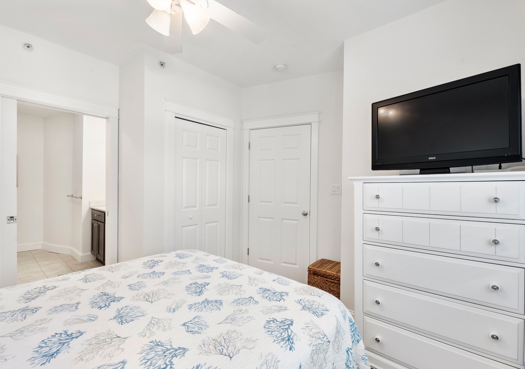 This unit has 2 master suites, each with a full bath which was perfect for our needs. It was clean and nicely decorated. The beds were comfortable. It is in a good location, close to the beach, restaurants and stores. We really enjoyed our stay.- Reviewed On: 7/1/2023