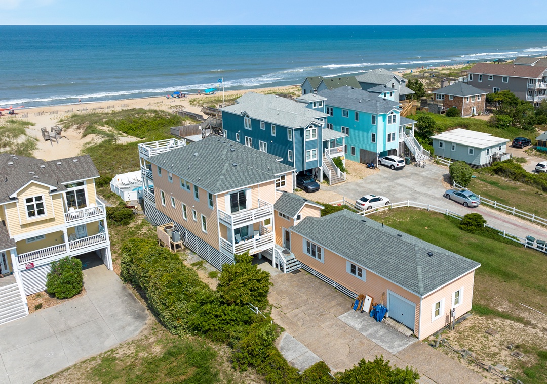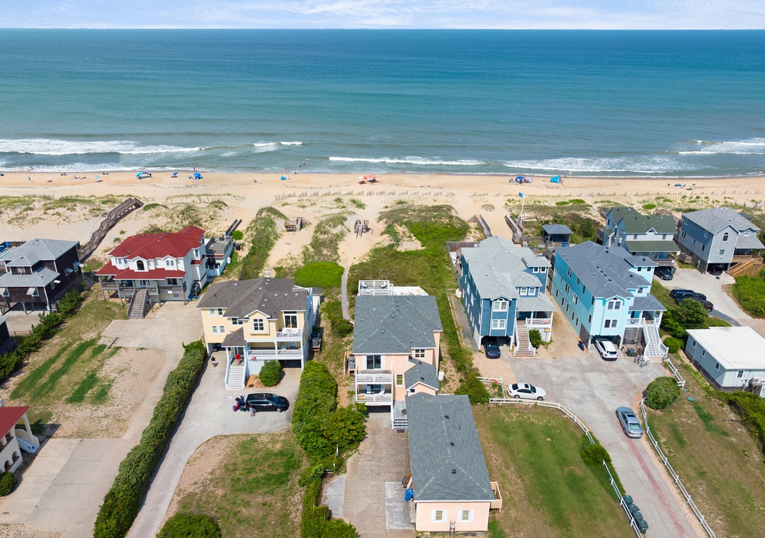 Updates for 2025: Newly renovated rec room with updated pool table, video game table, Skeeball, large TV and secondary den | Updated bathrooms | Hot Tub | New flooring, fresh paint and updated decor | New polywood outdoor furniture | Updated screened porch | New outdoor games including cornhole | King beds in all upper-level bedrooms - six total! Your family will go bananas over the prime location and incredible views at Surf Monkey, a fabulous oceanfront vacation home in South Nags Head. For non-stop fun in the sun, guests can easily transition from the pool to the beach using the private walkway with dunetop deck. Surf Monkey is packed with amenities that will keep everyone entertained throughout your stay, including a private pool, hot tub, and rec room. The pool can be heated certain times of the year, ideal for Spring and Fall getaways. With eight bedrooms and over 4,500 square feet of well-maintained living space, this oceanfront retreat is the perfect choice for extended families or multiple groups vacationing together.