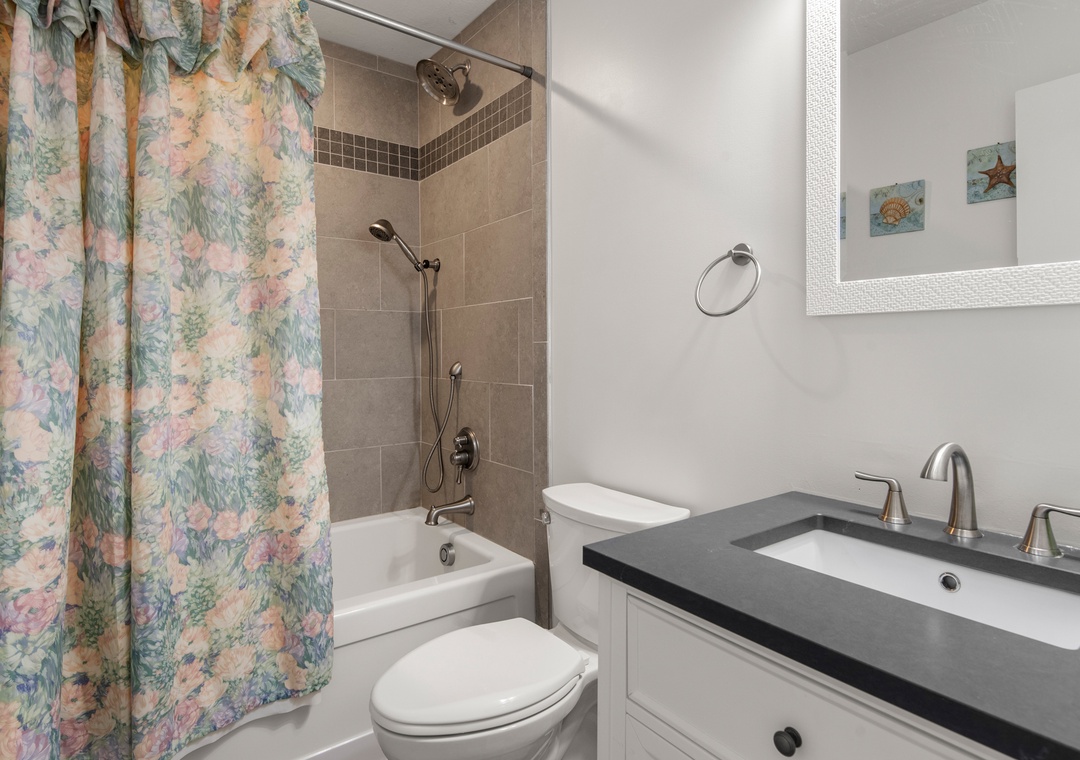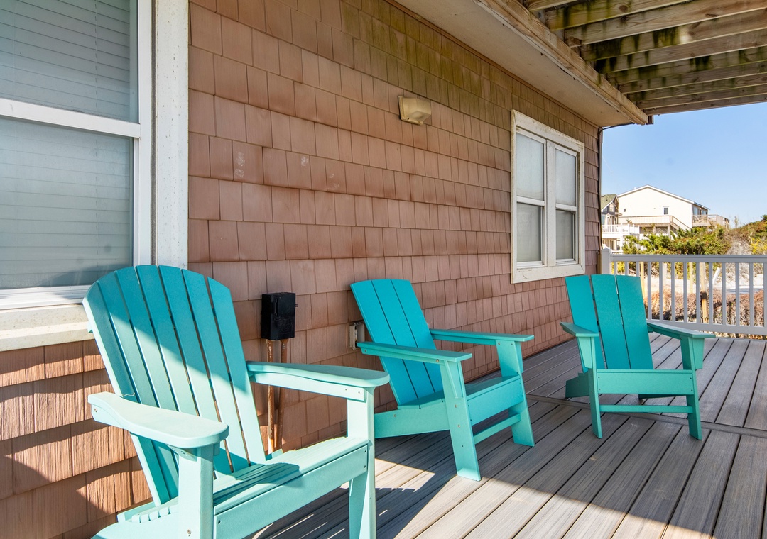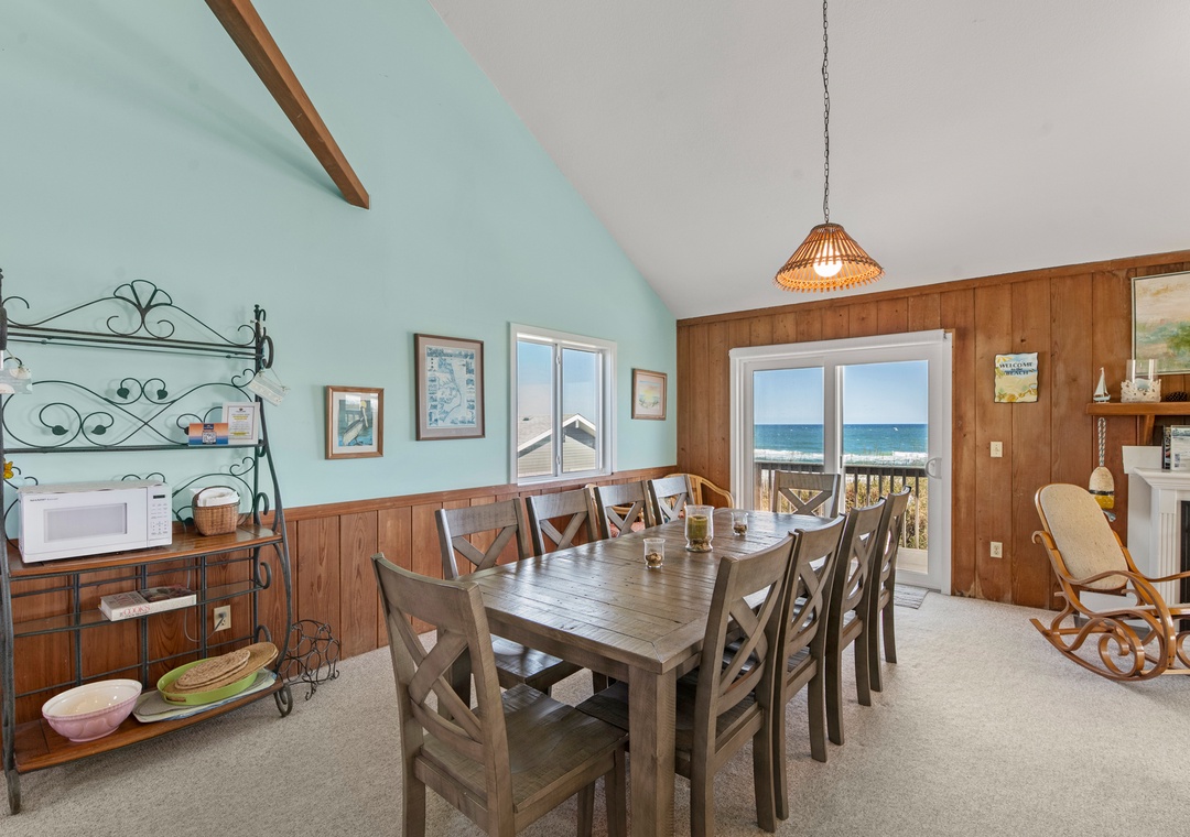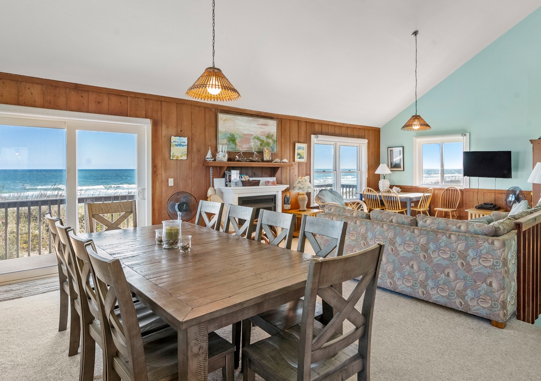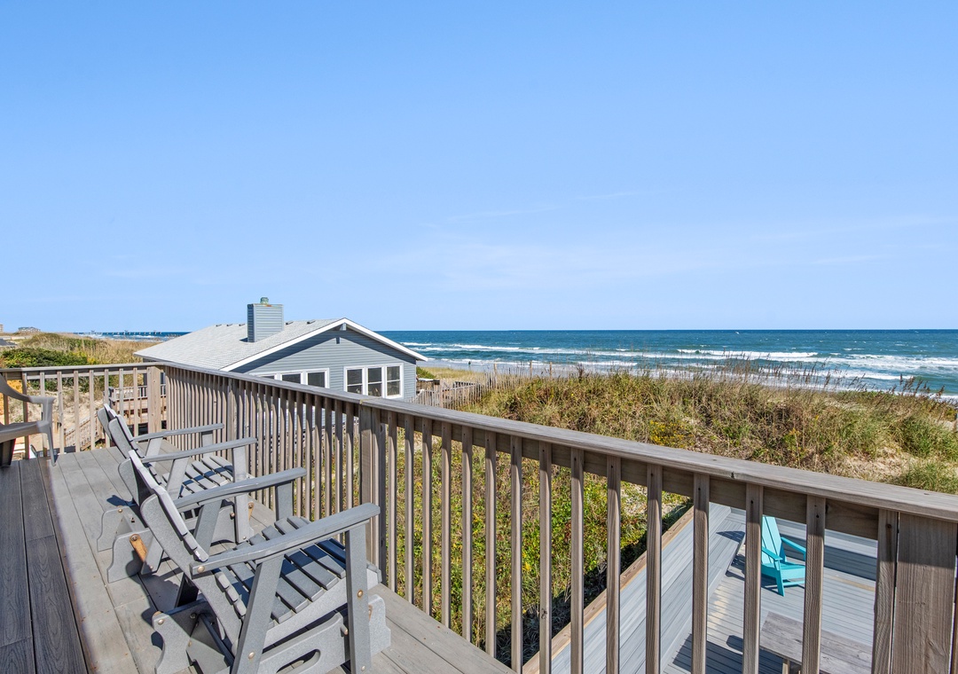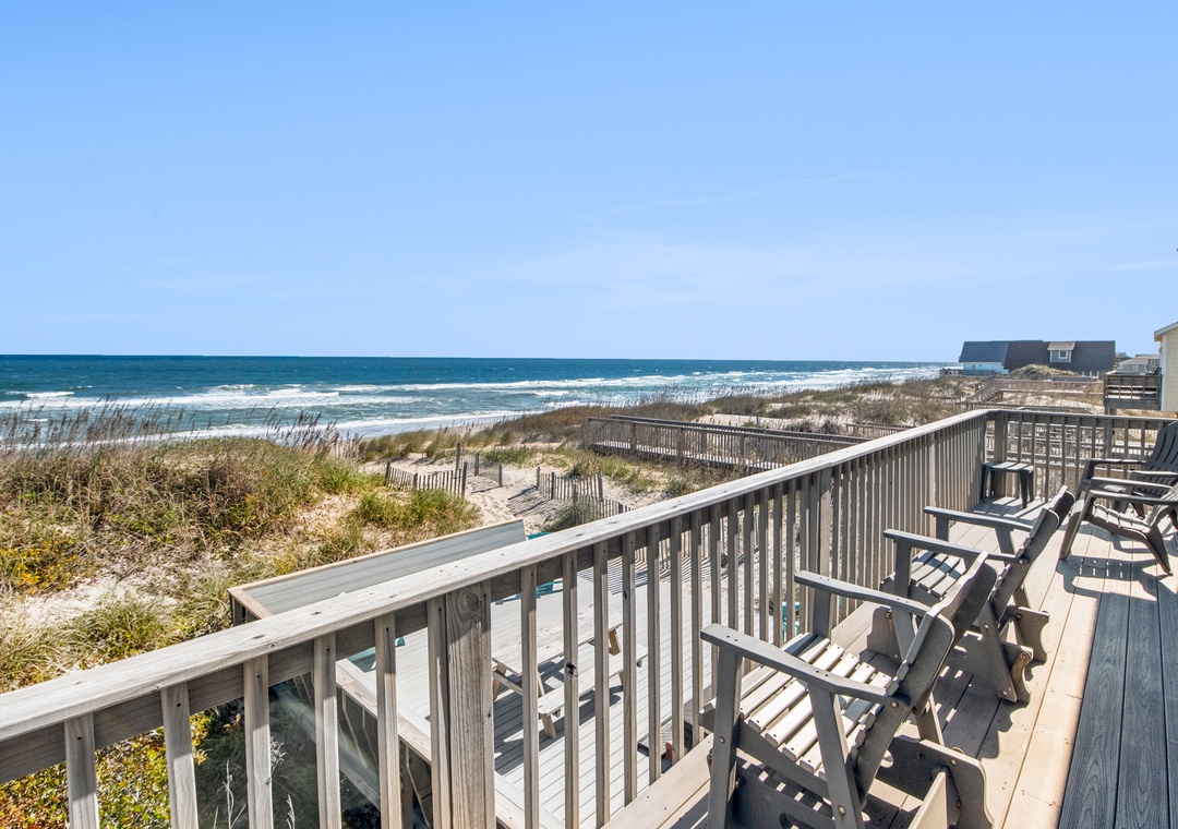 Start each morning on the top level oceanfront deck with a cup of coffee while watching the sunrise. When you're not on the beach or lounging by the pool, relax in the open-concept great room with a cozy fireplace and fabulous ocean views. The remodeled kitchen boasts granite countertops and is fully stocked for meal prep. The first king bedroom is located off of the kitchen, with access to a full hall bath. Downstairs, you'll find three more bedrooms and a second full bath. There's also a den that can serve as an additional hangout space and leads out to an oceanfront deck with bubbly hot tub.