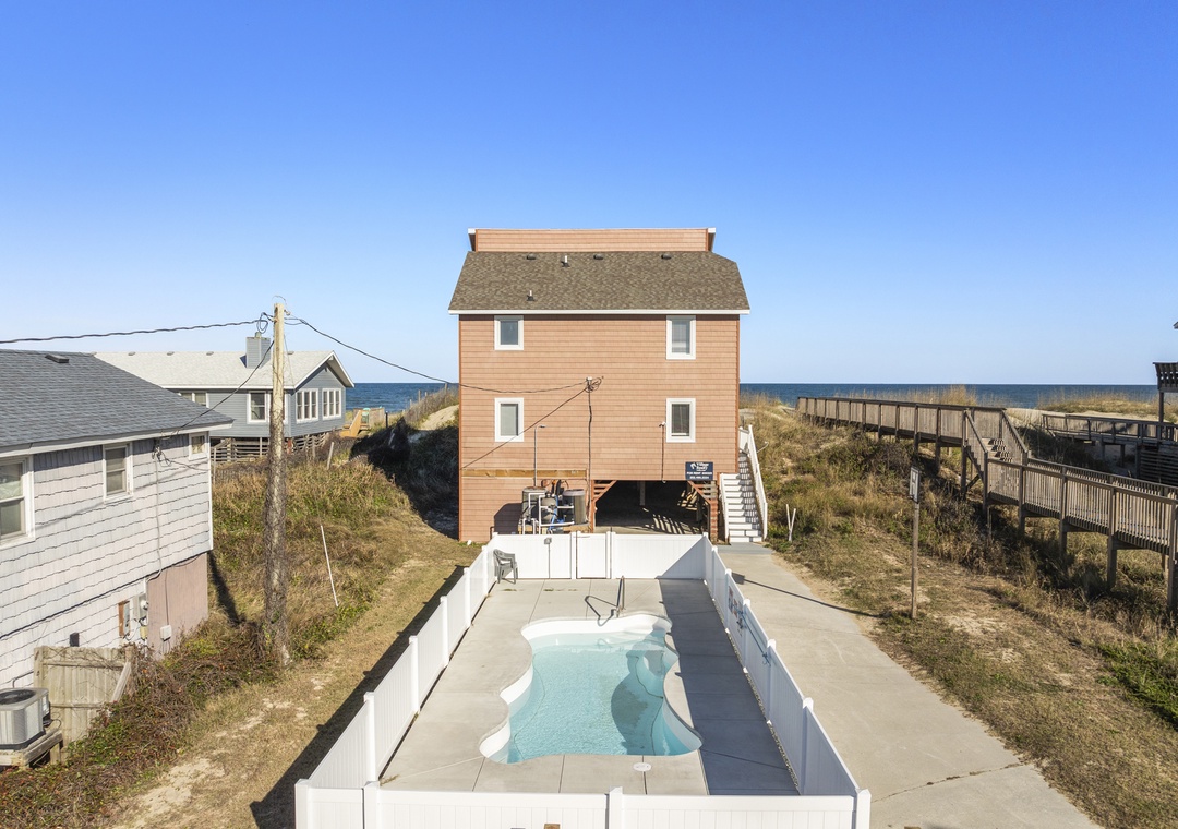 New to the Village Realty program for 2025! A brand new private saltwater pool will be installed just in time for the 2025 spring pool season. Almost Home is the destination you've been searching for! This oceanfront retreat in South Nags Head offers everything you need for a laid-back OBX vacation. From the direct beach access and unobstructed ocean views to the private saltwater pool and hot tub, Almost Home isn't just a place - it's a state of mind. Dogs are welcome, so bring your furry friends to join you for long walks on the beach.