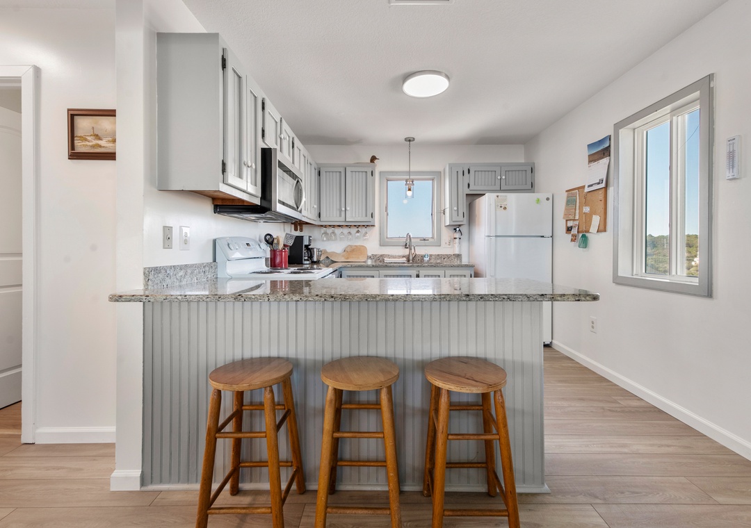 Conveniently located at Milepost 17.5, Almost Home provides the tranquility of the all-residential South Nags Head area while still being close to grocery stores, shopping and dining. Take a bike ride or short drive to Sam & Omie's for brunch and their famous Bloody Marys, then make your way across the street to Jennette's Pier for some of the best fishing and surfing conditions on the East Coast. At dinnertime, head over to the causeway where you'll find legendary Outer Banks restaurants including Sugar Creek, Tale of the Whale, and Lone Cedar.