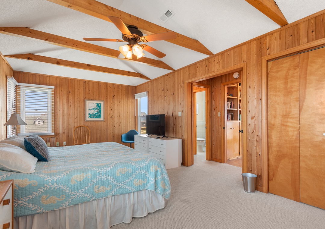 Thank you for your review. We’re glad the location, ocean view from the master, and the comfortable bed met your expectations and that the house was clean. Sorry the nor’easter kept you from enjoying the deck — we hope you’ll visit again under sunnier skies.Village Realty staff