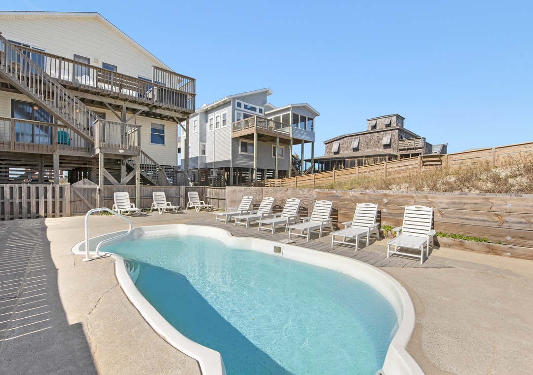 Discover why South Nags Head is the best kept secret on the Outer Banks when you reserve Sea of Tranquility for your next family vacation. This oceanfront home is situated right on the dune line for direct beach access, unobstructed views and morning sunrises over the Atlantic. Recent renovations include a fully remodeled kitchen and updated bathrooms. You'll also have your very own private pool and hot tub for around-the-clock fun and relaxation. The pool can be heated certain times of the year, ideal for Spring and Fall getaways.