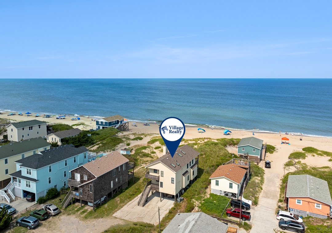 New to the Village Realty program for 2025! Make Gillespie Cottage the home away from home that your family will want to return to year after year. This classic oceanfront retreat in South Nags Head offers exceptional views and your own private access to the beach. Two levels of east-facing covered decks provide plenty of outdoor space for watching the sunrise and listening to the crashing waves. Inside, kick back and relax in the comfortably furnished great room, where vaulted ceilings and multiple skylights make the space feel bright and airy. The open-concept layout is perfect for spending quality time together, even while preparing meals in the well-equipped kitchen. The primary bedroom and a full bath are also located on the top level, with four additional bedrooms and two more full baths on the mid level. This wonderful home provides comfort, convenience and so much more for your family to enjoy.