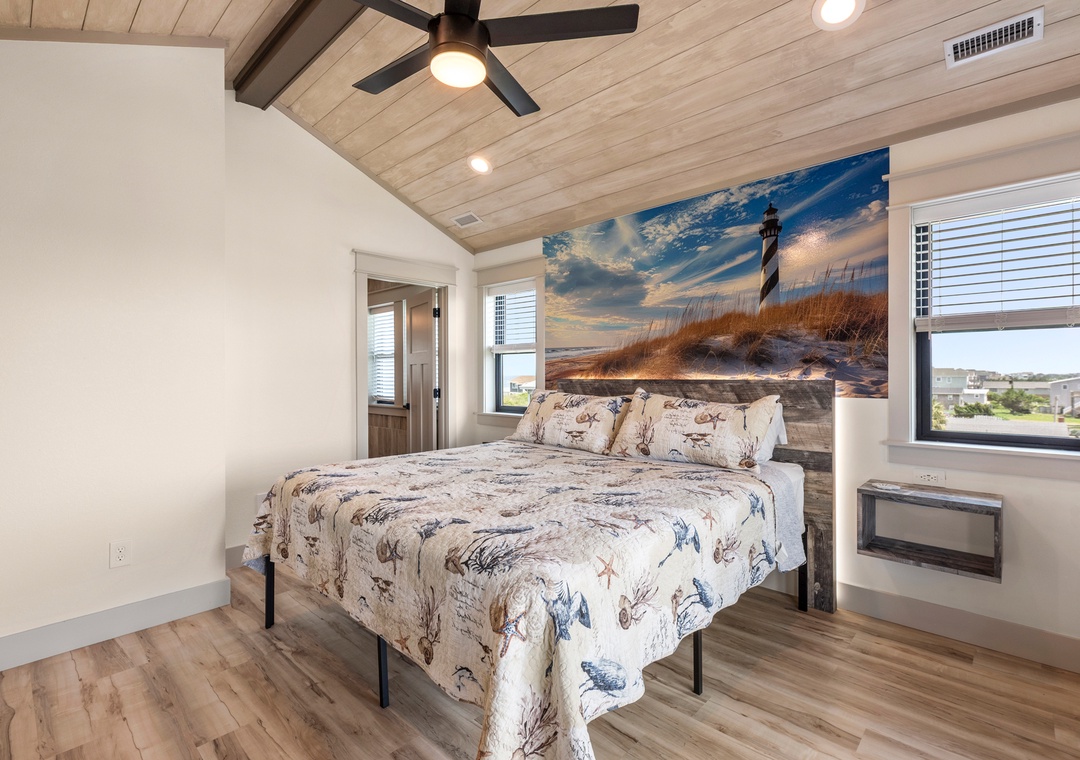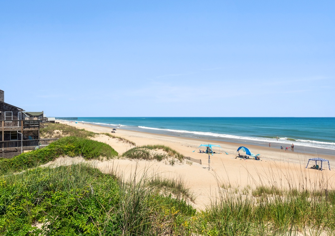 Located at Milepost 19.5 where the beaches are wide and uncrowded, Pelican Pelican Pelican offers the tranquility of the slower-paced South Nags Head area while still being close to grocery stores, shopping and dining. Walk or bike to the Outer Banks Fishing Pier and Fish Head's Bar and Grill, just ¾ of a mile north of the house, where you can savor delicious food and refreshing drinks while enjoying live music and a stunning ocean view. Or take a short drive south to Coquina Beach and the 4x4 beaches, which are cherished local spots for fishing and surfing. If you're up for more adventure, you can explore the iconic Bodie Island Lighthouse or embark on a ferry ride to Ocracoke for an unforgettable day trip.