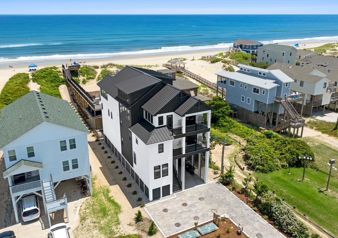 Welcome to Pelican Pelican Pelican, a magnificent oceanfront retreat in South Nags Head that's been curated to perfection for a luxury Outer Banks vacation experience. This brand new, contemporary home boasts a private pool with cabana, hot tub, rec room, and unobstructed ocean views. For non-stop fun in the sun, easily transition from the pool area to the beach using the private dune walk-over. During the summer months, guests will enjoy complimentary beach cabana service with daily set up and breakdown of a tent and beach chairs. Back at the house, eight bedrooms and 5,000 square feet of well-appointed living space makes Pelican Pelican Pelican the perfect choice for multiple or extended families. An elevator that goes all the way from the ground level to the top floor is ideal for guests with mobility needs and makes checking in and out hassle-free. Skip the stairs and use it to send luggage and groceries to the upper floors.