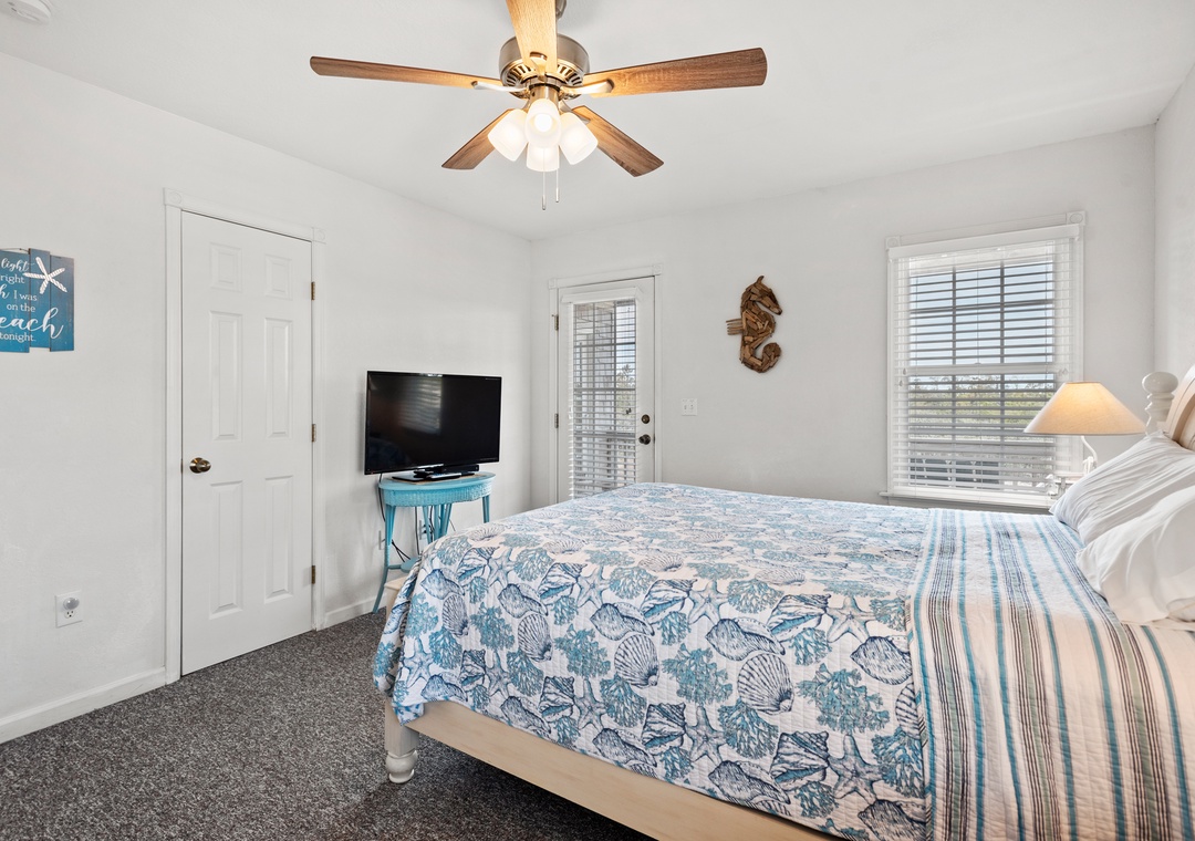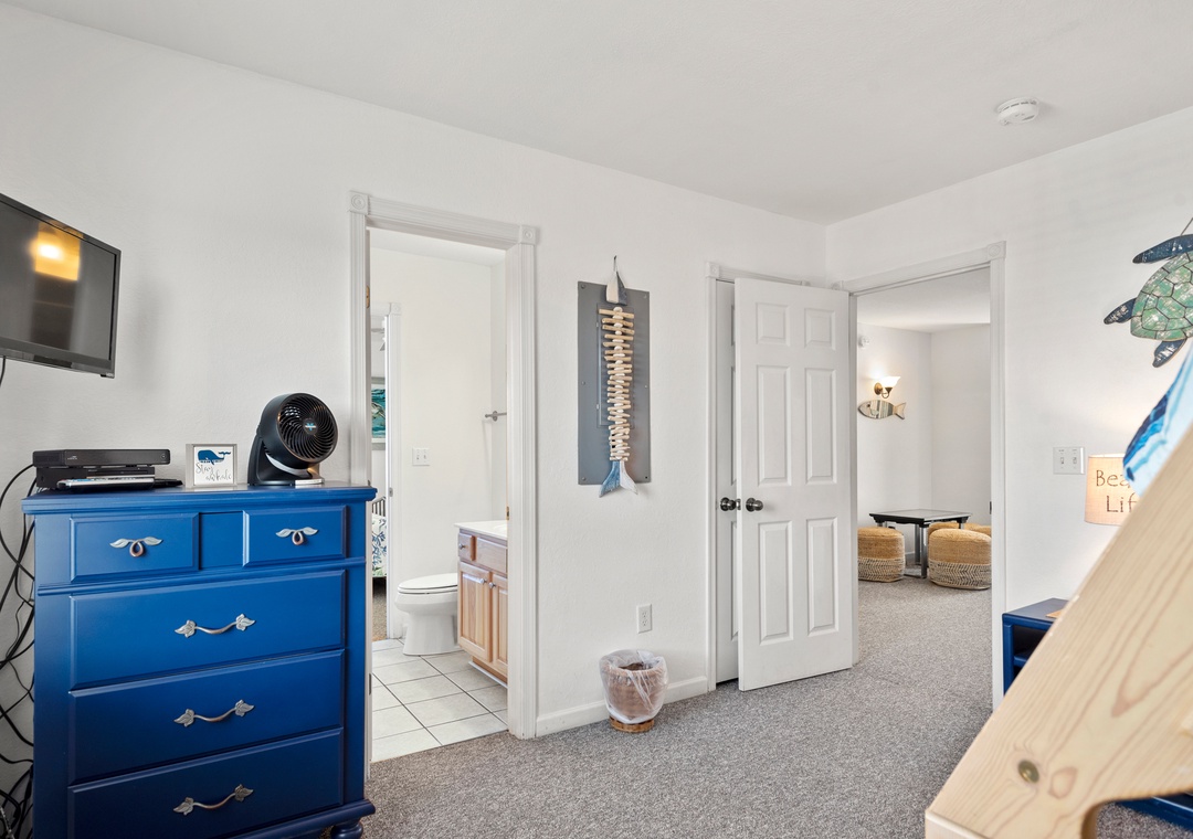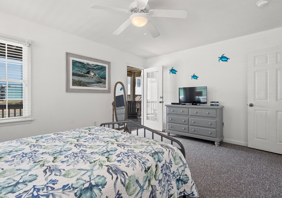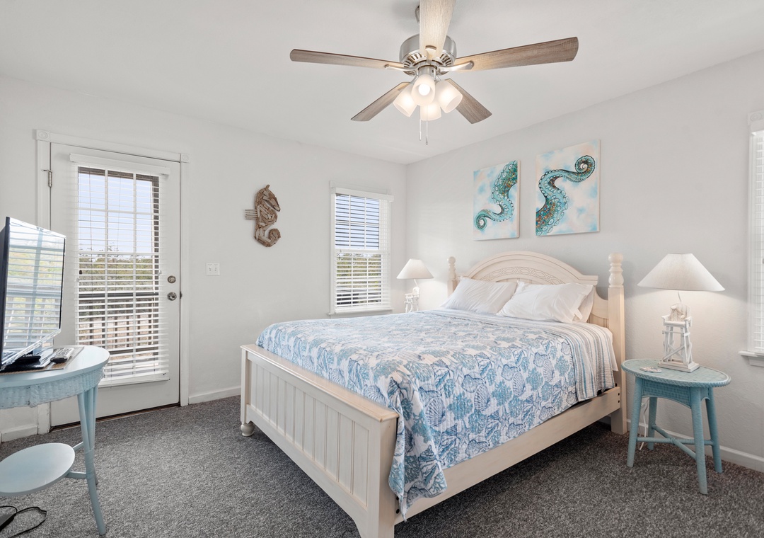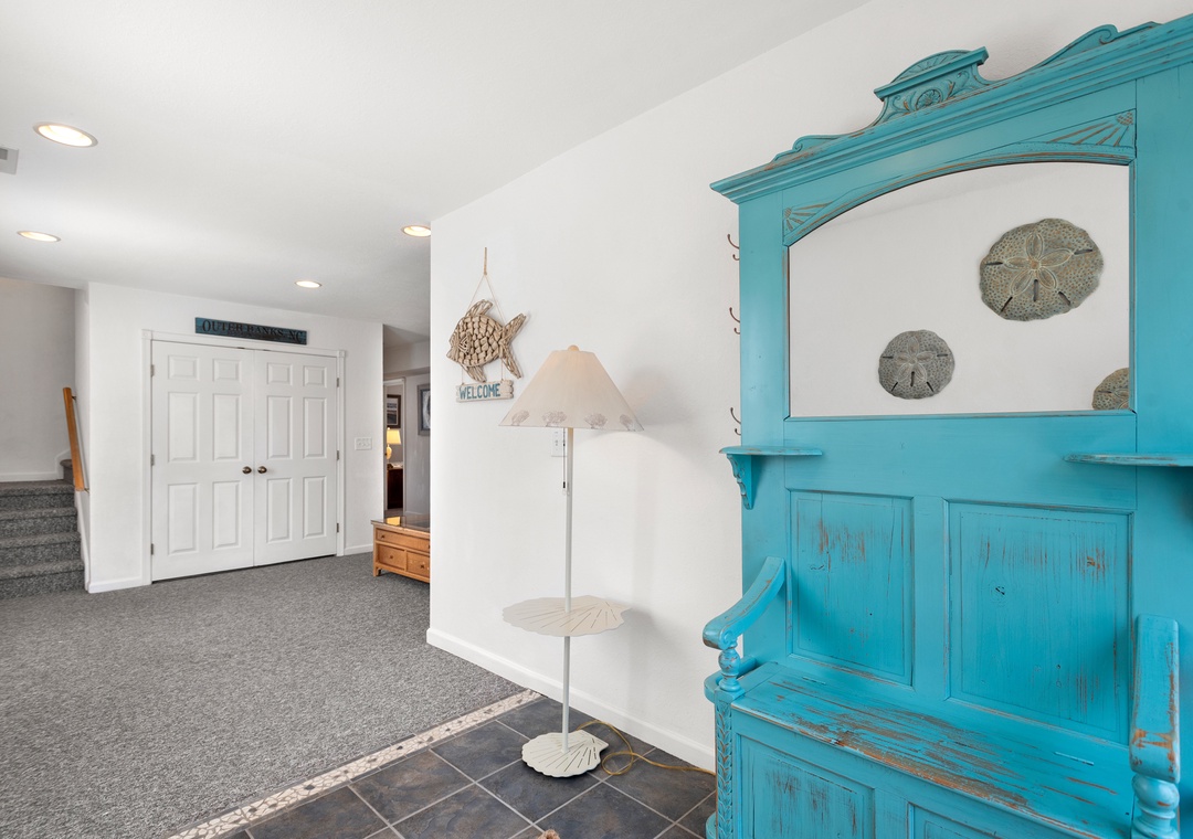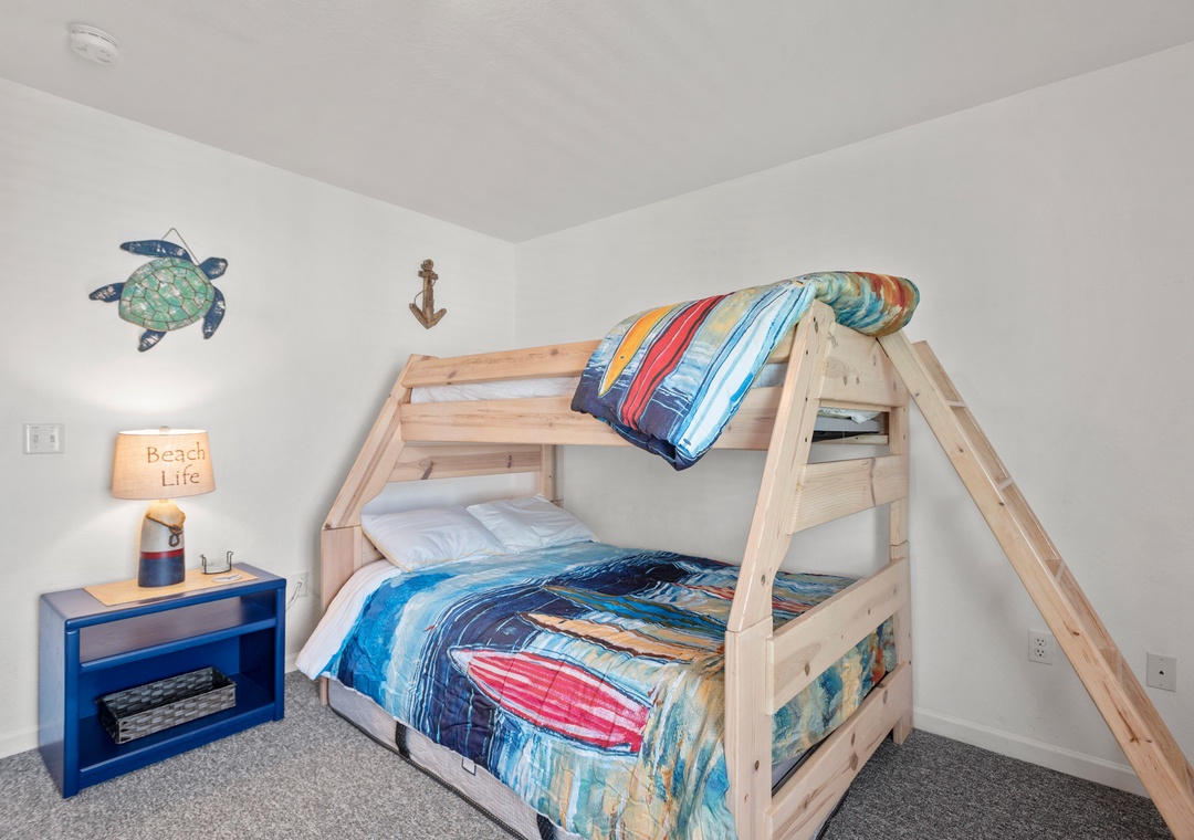 The spacious great room boasts vaulted ceilings and hardwood floors throughout, with an open-concept layout encouraging quality time spent together. When you're not eating out, a dining table for 12 and bar seating at the kitchen for six more allow everyone to enjoy meals together. A sun deck is located directly off the great room for effortless indoor/outdoor living, offering a fantastic view of the ocean. The loft space is set up as an office with complimentary high speed internet, which can be used for remote work or school. All TV's throughout the home provide both streaming capabilities and local cable channels.