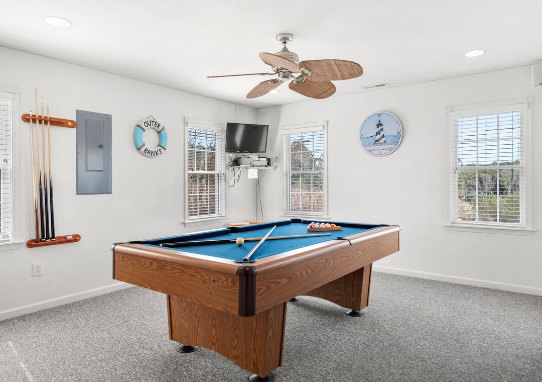Choosing the Summer Rental for our OBX vacation was a win! We had three families with teens and tweens, and the layout and number of bedrooms and bathrooms were ideal for our group. The kitchen is stocked with so many thoughtful items; it was like being at home. For example, there are crock pots, blenders, pots for steaming seafood, numerous dishes, glasses, utensils, knives, coffee makers, and a waffle maker. The upper level is spacious and offers ample seating for eating meals, playing games, and socializing. When we were at the house, we enjoyed using the pool, hot tub, pool table, and yard games. Importantly, it is an easy walk across the street to beach access. We also like that the Summer Rental sits back from the two neighboring houses and that next to and behind it are trees and vegetation, which makes the setting feel more private. Staying at a comfortable and convenient property helped us have a happy and memorable family vacation.- Reviewed On: 7/21/2024