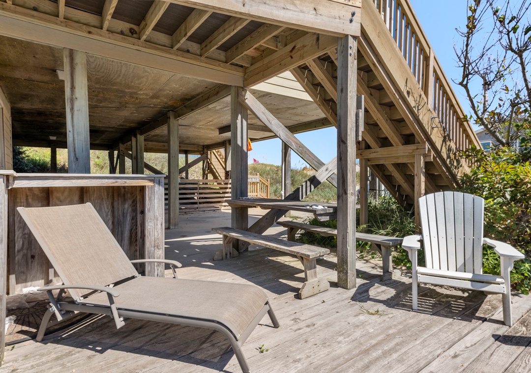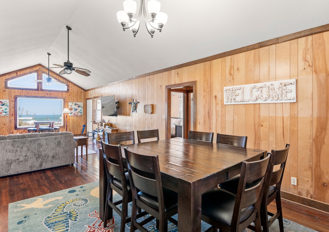 We had a wonderful stay at the Beech Nut house! It was located right next to an ocean-facing sand dune on a quiet stretch of beach in south Nags Head. We watched dolphins swimming from the living room window in the morning and heard the ocean from the bedroom at night. Bring a flashlight! It gets pretty dark in this stretch of the OBX though the star-gazing is fantastic. The house is laid out well with comfy furniture and plentiful seating -- though it was just two of us and our two dogs. The screened deck was larger than it looked in photos and a great escape from the sun. The kitchen had nearly all the cooking equipment we needed. Just a heads up: the rental doesn't provide basic cooking ingredients or beach equipment. For electric vehicle owners, there is a standard wall plug under the house. We enjoyed our time here and would recommend it to anyone looking for a peaceful stay in the OBX!- Reviewed On: 5/4/2024