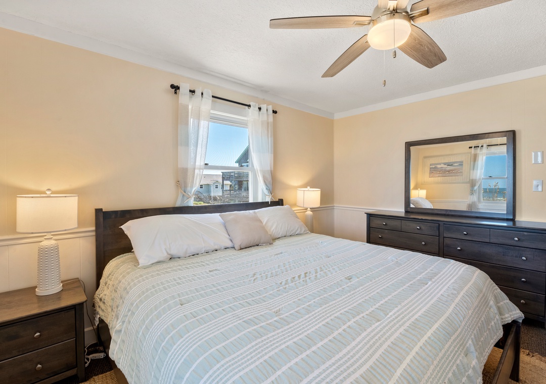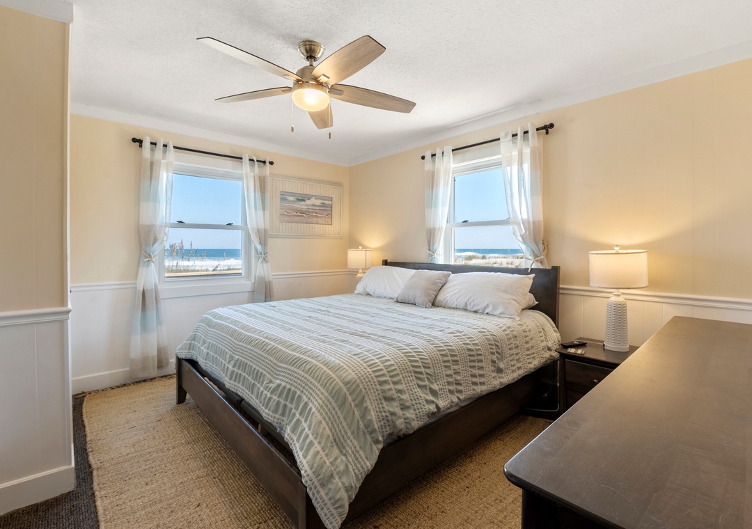 Back inside, the open-concept layout takes full advantage of the home's prime location. Take in the unobstructed ocean views from all the common areas of the home, even while preparing meals in the well-equipped kitchen. Three king bedrooms (one of which offers an ocean view), a bunk bedroom and two full baths will comfortably accommodate family and friends.