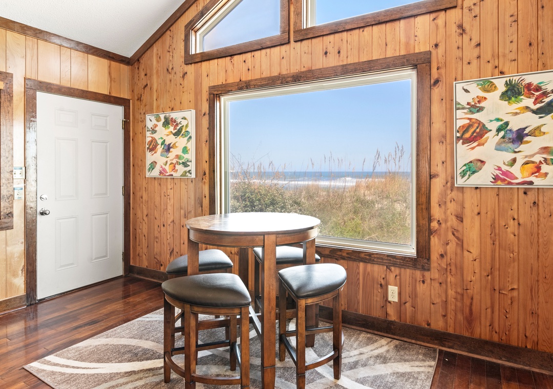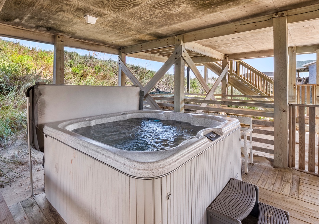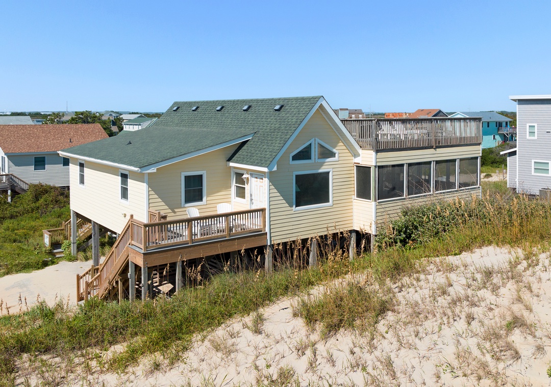 Beech Nut is a charming oceanfront cottage in South Nags Head that you'll want to return to year after year. Situated right on the dune line just steps from the ocean, getting to the beach couldn't be easier. There are plenty of outdoor areas for enjoying the salty air and coastal breezes. Soak up the rays from the sun deck while enjoying an ocean view and salty breezes. An expansive screened-in porch is furnished to serve as an outdoor living and dining space. Downstairs, gather the family on the patio where you can fire up the grill for a beachfront barbecue. If some alone time is what you really need, unwind in the shade with a relaxing soak in the hot tub. A half bath on the ground level is an added convenience for non-stop fun in the sun.